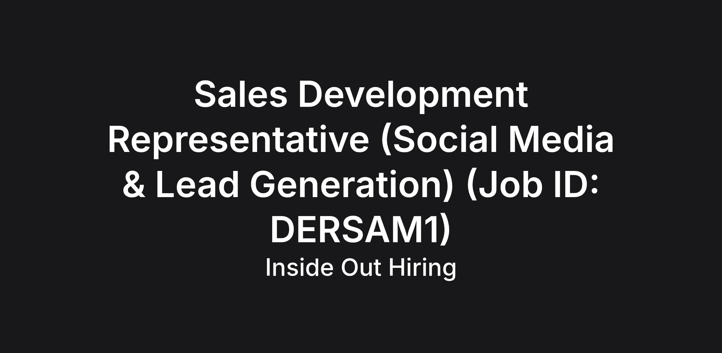 Sales Development Representative (Social Media & Lead Generation) |
