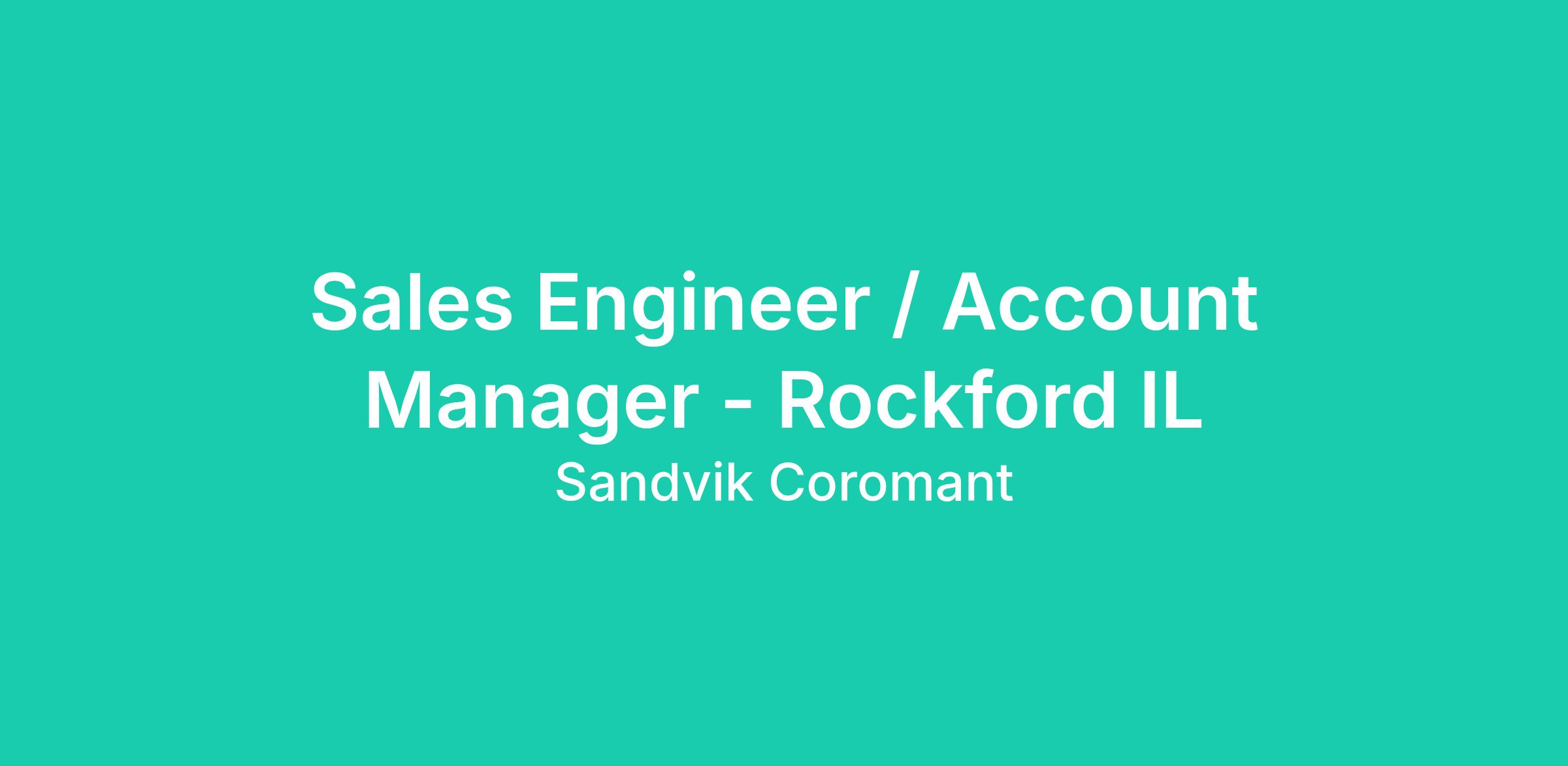 Apply now at www.sandvik.com/careers and search for Job # R0090411 – Sales Engineer / Account Manager for Rockford, IL region.