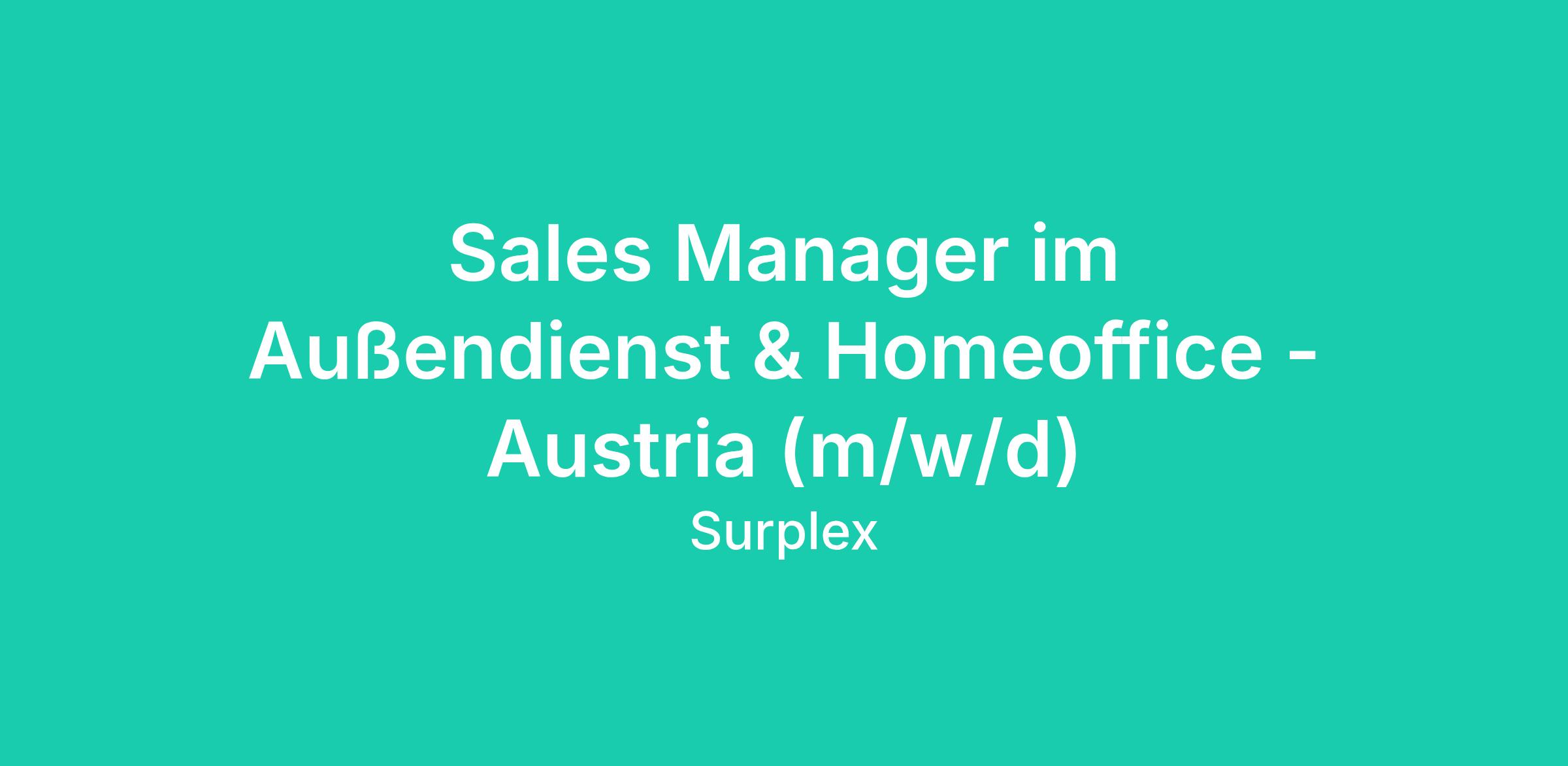 Sales Manager im Außendienst & Homeoffice - Austria (m/w/d)