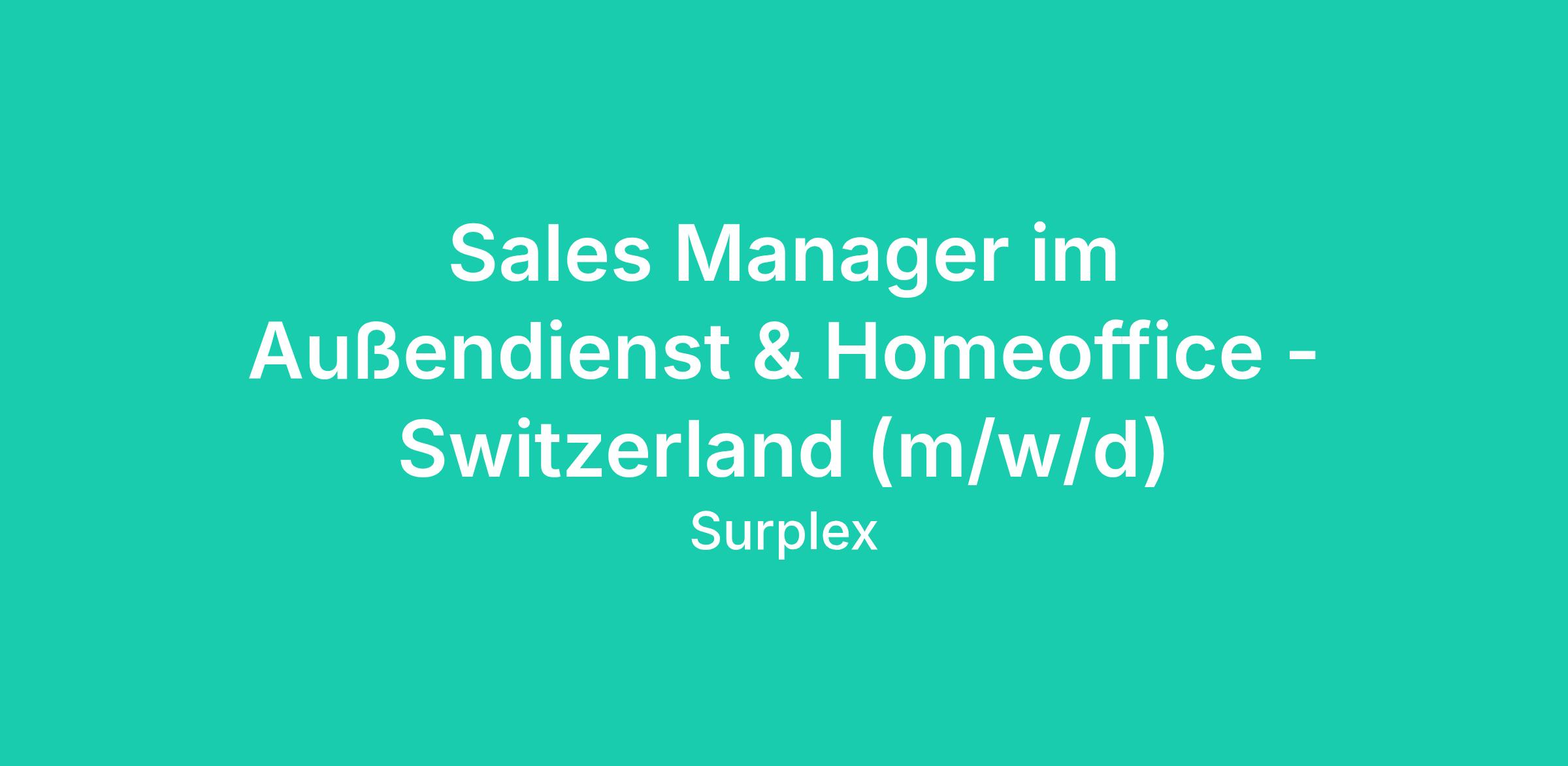 Sales Manager im Außendienst & Homeoffice - Switzerland (m/w/d)