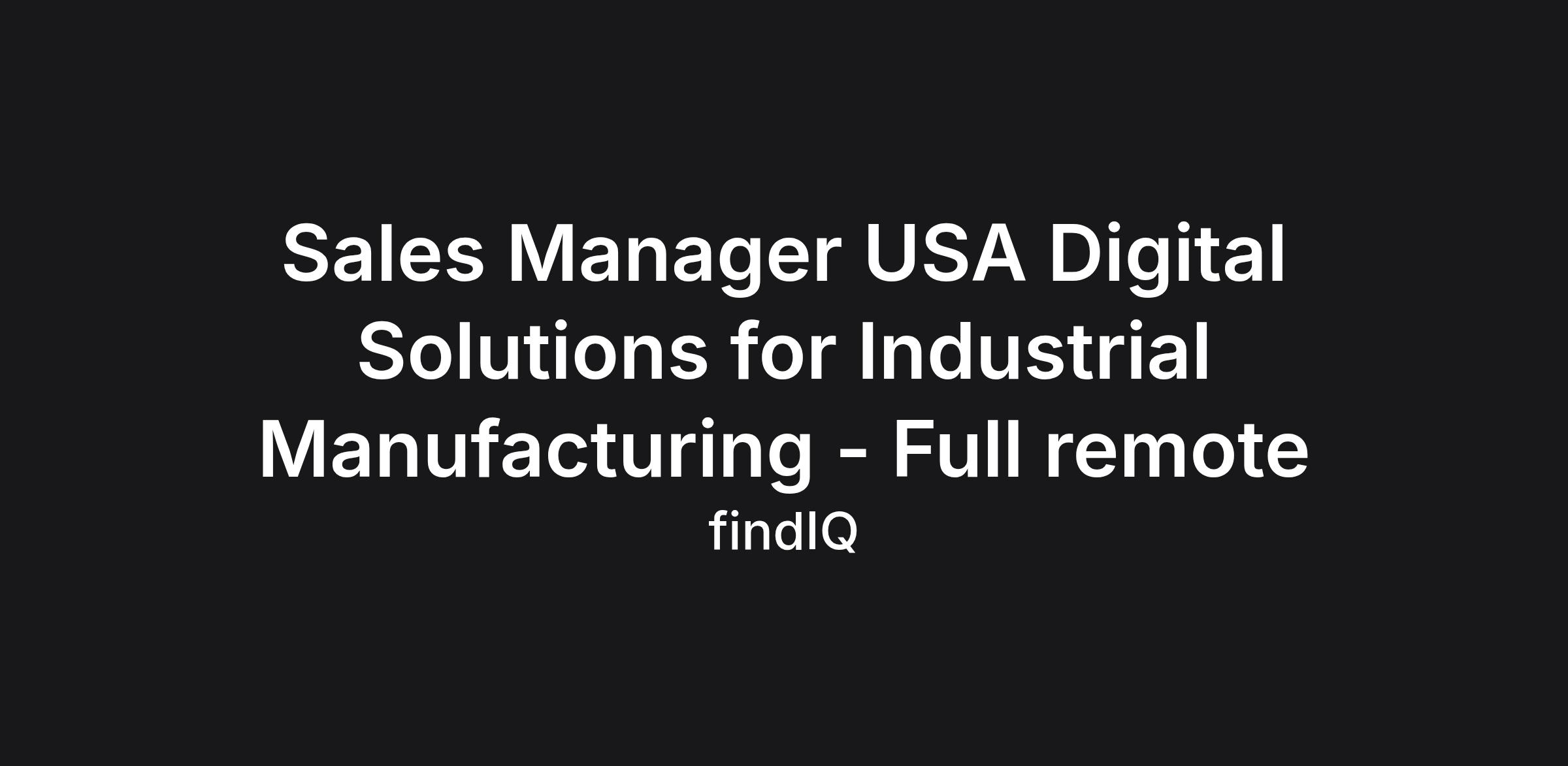Sales Manager USA Digital Solutions for Industrial Manufacturing - Full remote