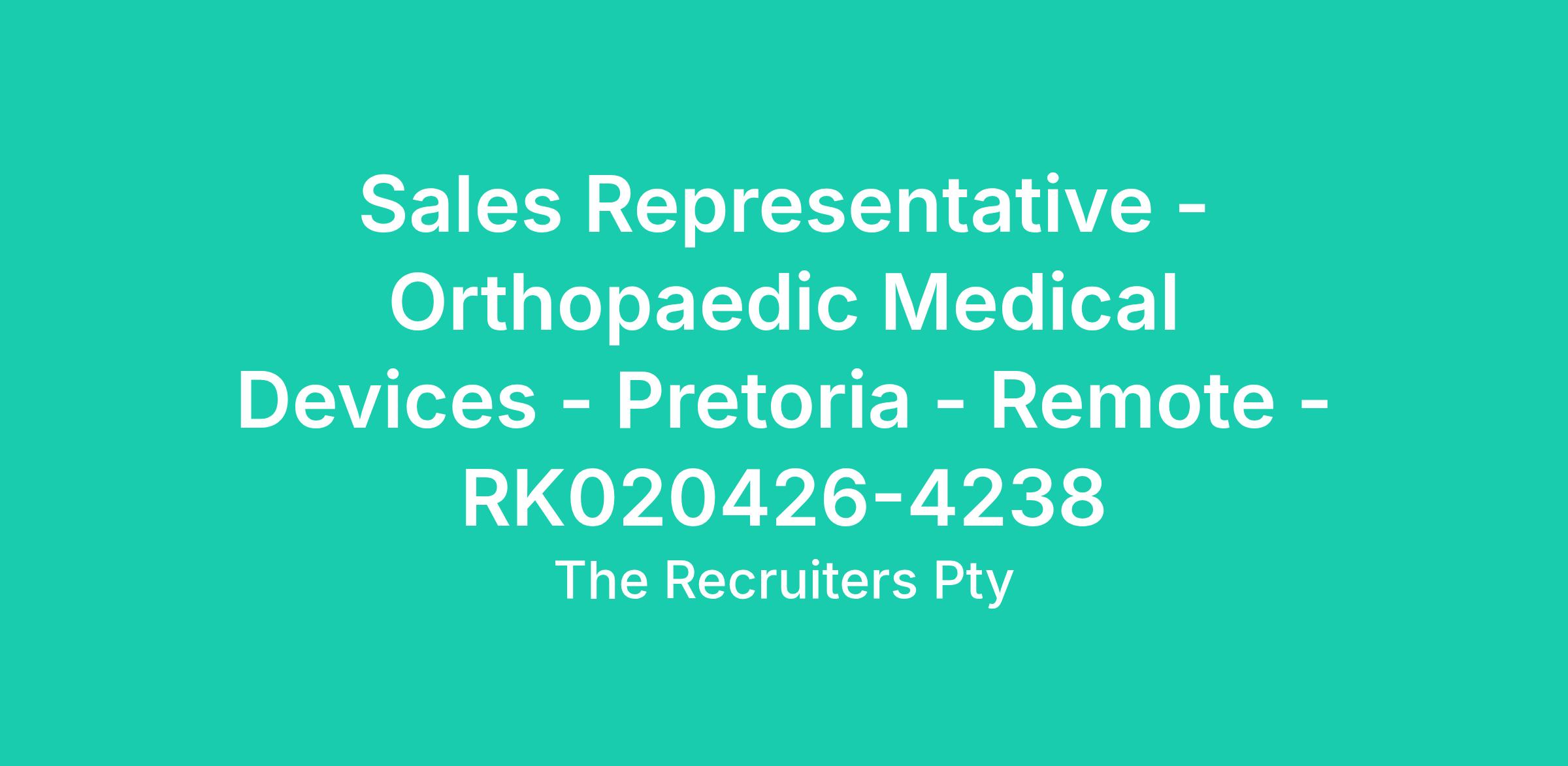 Job Description: Sales/Senior Sales Representatives – Surgical Division (Orthopaedics Focus) - Gauteng - Remote