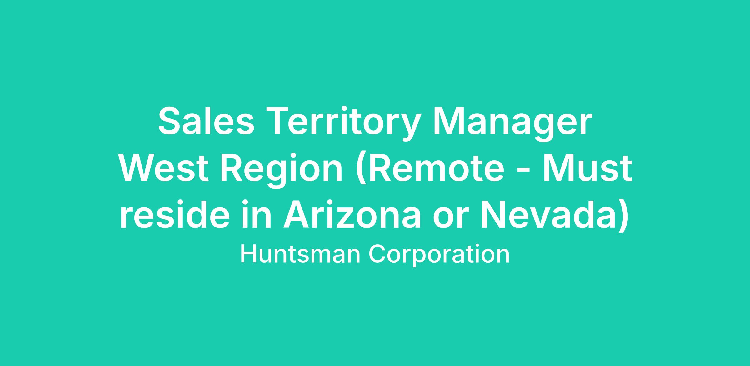 Huntsman is seeking a Sales Territory Manager supporting the Polyurethanes Division, covering Arizona, California, and Nevada. This role is remote, and the candidate must reside in Arizona or Nevada. The position will report to the Regional Sales Director.