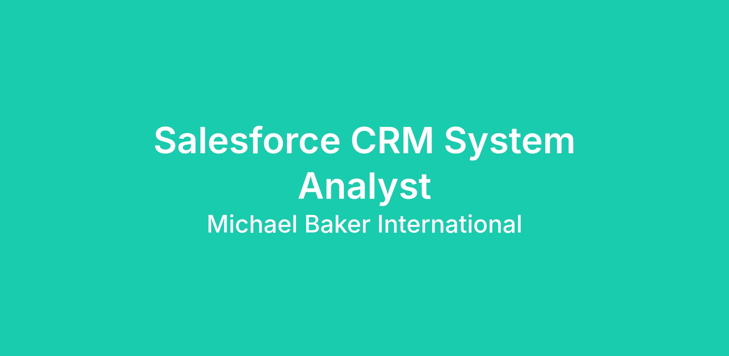 Michael Baker International is seeking a Salesforce CRM System Analyst to support the design, configuration, and delivery of our Salesforce Sales Cloud platform. This role will work closely with business stakeholders and technical teams to implement and optimize CRM processes across Accounts & Contacts, Lead Management, Opportunity lifecycle, Proposal Management, and Reporting & Analytics. The ideal candidate combines functional knowledge of Sales Cloud with technical skills in configuration, data management, reporting, analytics, automation, integrations, and system maintenance & support.