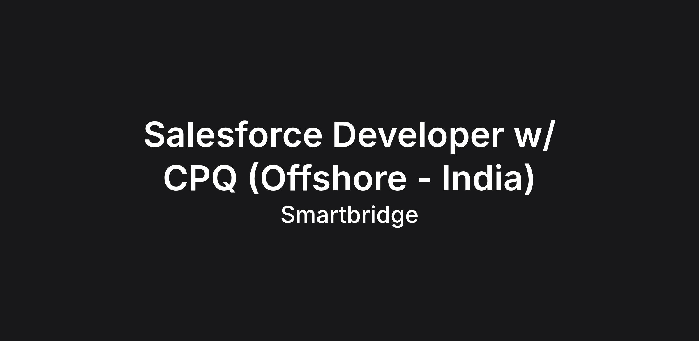 About the Role: Smartbridge is seeking a Salesforce Developer with 5 to 7 years of experience in designing and implementing custom Salesforce solutions using Flow Builder, Apex, Visualforce, and LWC. The ideal candidate will have experience in both declarative and code-based development, including Salesforce CPQ configuration and customization.