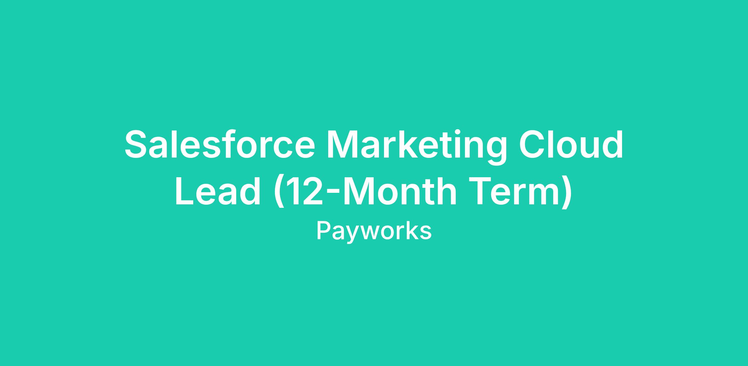 We are proud to support a Flexible Work Plan that recognizes the diverse needs and lifestyles of our people. The Salesforce Marketing Cloud Lead (12-Month Term) has the option to work fully from a Payworks office or follow a hybrid work model, working in the office at least three (3) days a week.
