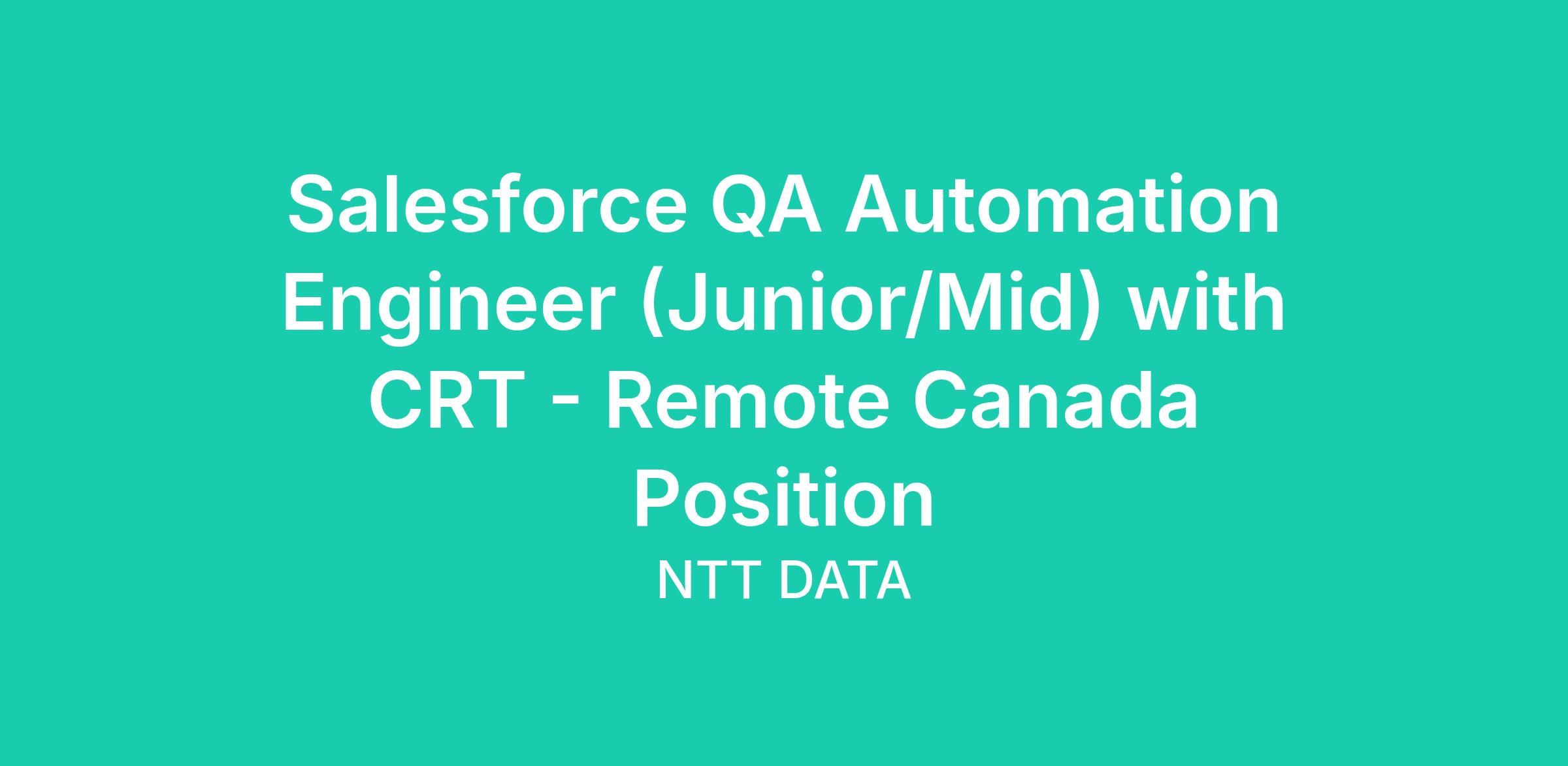 We are currently seeking a Salesforce QA Automation Engineer (Junior/Mid) with CRT - Remote Canada Position
