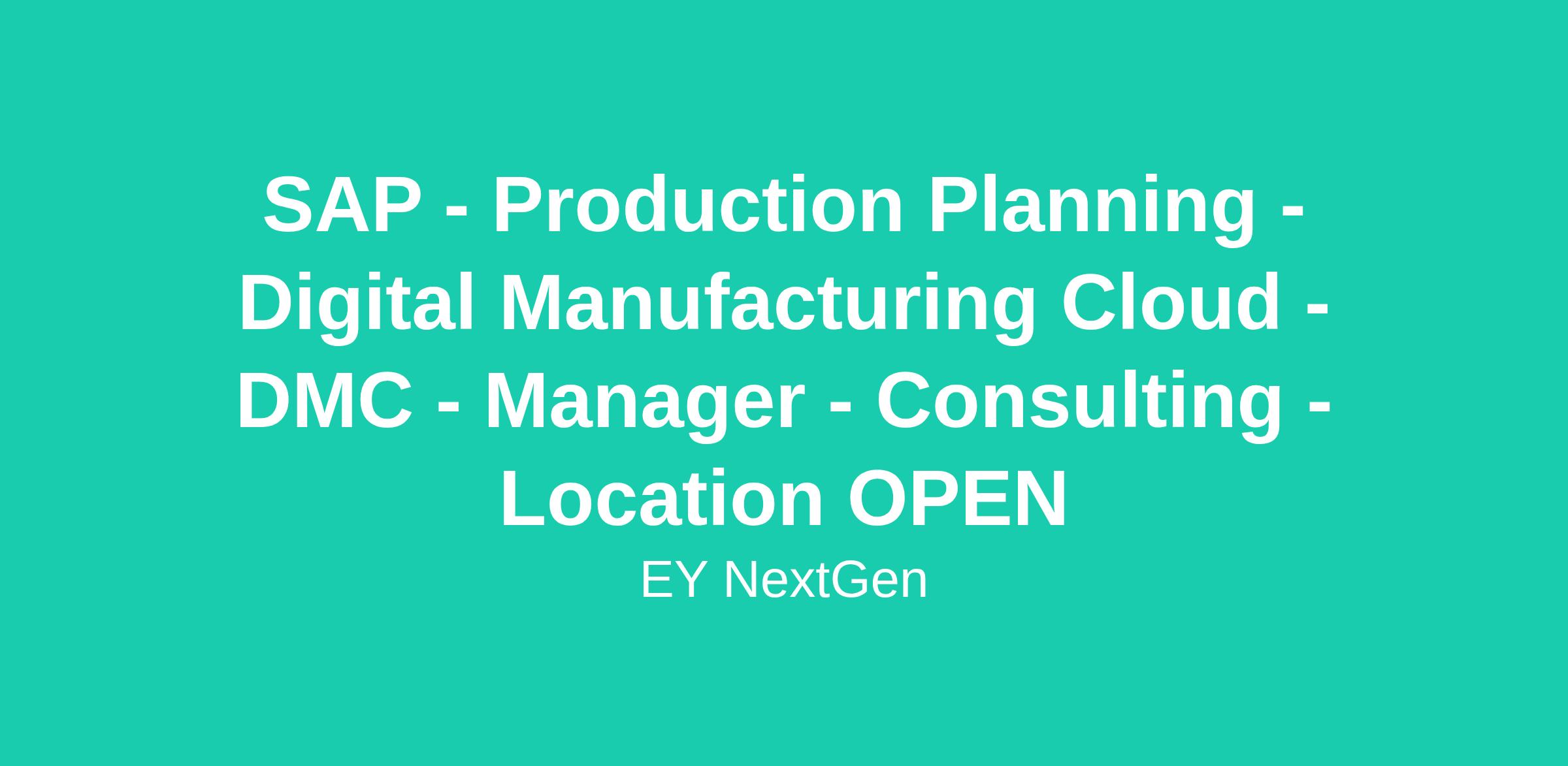 Our objective is to provide clients with a unique business perspective on how to leverage SAP technology specifically within Digital Manufacturing Cloud (DMC) to enhance their operational efficiency. This is rooted in EY’s SAP service line capabilities (Supply Chain, FICO, BPC, Data & Analytics, Customer, Tech/Arch and SuccessFactors) that are focused on helping clients improve performance and increase productivity.