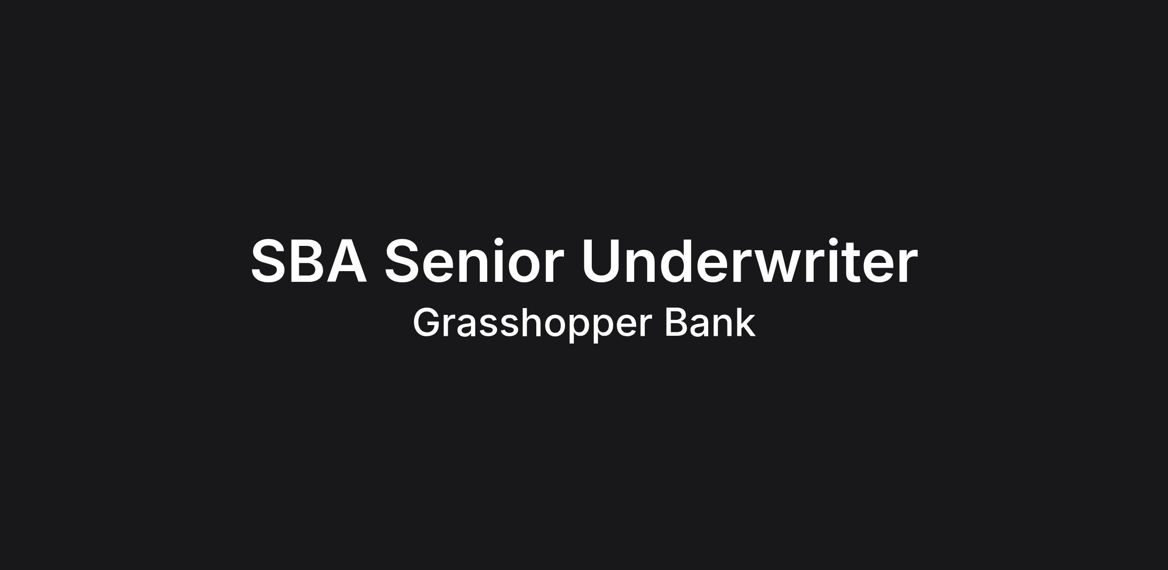 The SBA Underwriter will be responsible for evaluating Small Business Administration (SBA) loan applications based on established Grasshopper Bank credit criteria and SBA Standard Operating Procedures. The SBA Senior Underwriter is responsible for reviewing SBA credit applications and recommending a decision to team leadership. Elements of this role include but are not limited to preparing credit memos, recommending appropriate structural changes as needed, ordering and reviewing third party reports, reviewing and determining SBA eligibility, reviewing application-specific documents such as management agreements, leases, landlord waivers, and all other tasks as assigned. This position will also work directly with business development officers and closers to assist borrowers until loan funding.