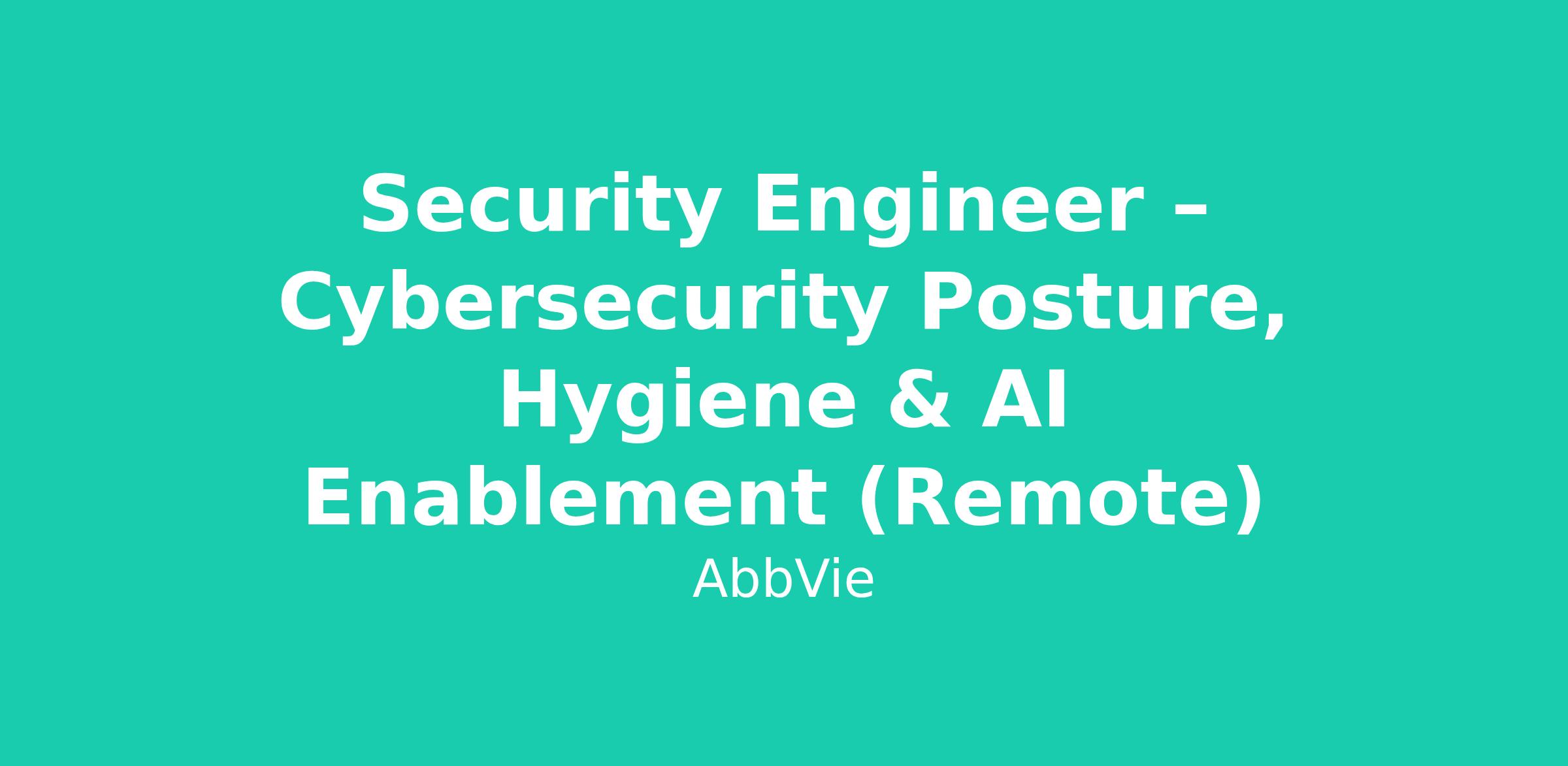 Come to work each day with an inclusive and collaborative Business Technology team! As a Security Engineer – Cybersecurity Posture, Hygiene & AI Enablement in AbbVie Business Technology Solutions (BTS), you’ll have opportunities to contribute to the digital transformation of a leading biopharma company, helping to create solutions that impact patients and their communities for the better.