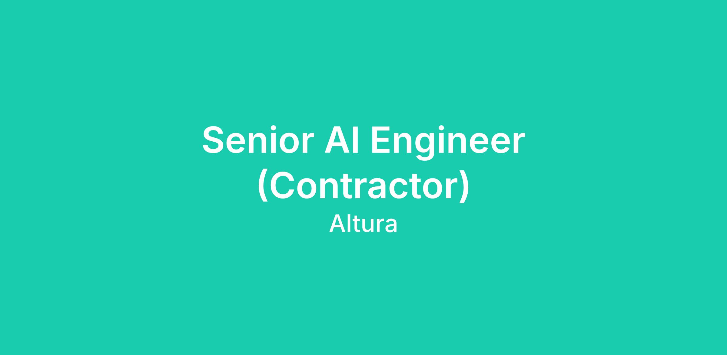 As a Senior AI Engineer (Contractor), you'll join a high-caliber team building the agentic layer that powers Altura's next evolution.