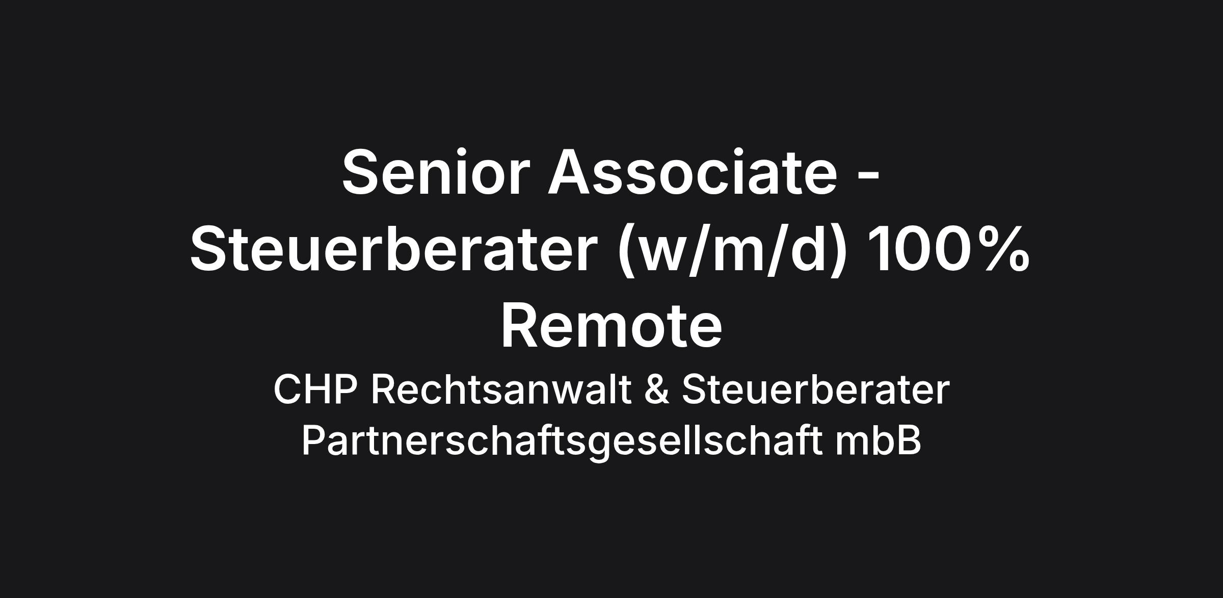 Senior Associate - Steuerberater (w/m/d) 100% Remote