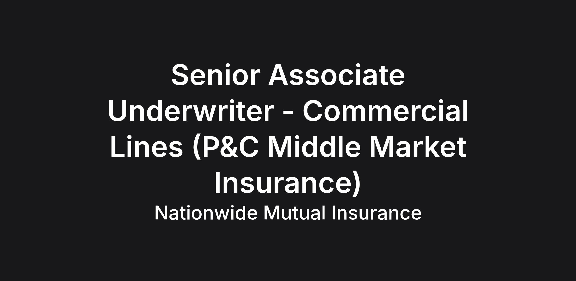 Nationwide pays on a geographic-specific salary structure and placement within the actual starting salary range for this position will be determined by a number of factors including the skills, education, training, credentials and experience of the candidate; the scope, complexity and location of the role as well as the cost of labor in the market; and other conditions of employment. If a Sales job, Sales Incentives, based on performance goals are possible in addition to this range. Note on Compensation for Part-Time Roles: Please be aware that the salary ranges listed below reflect full-time compensation. Actual compensation may be prorated based on the number of hours worked relative to a full-time schedule. The national salary range for Senior Associate Underwriter - Commercial Lines : $49,100.00-$91,300.00 The expected starting salary range for Senior Associate Underwriter - Commercial Lines : $49,100.00 - $73,700.00