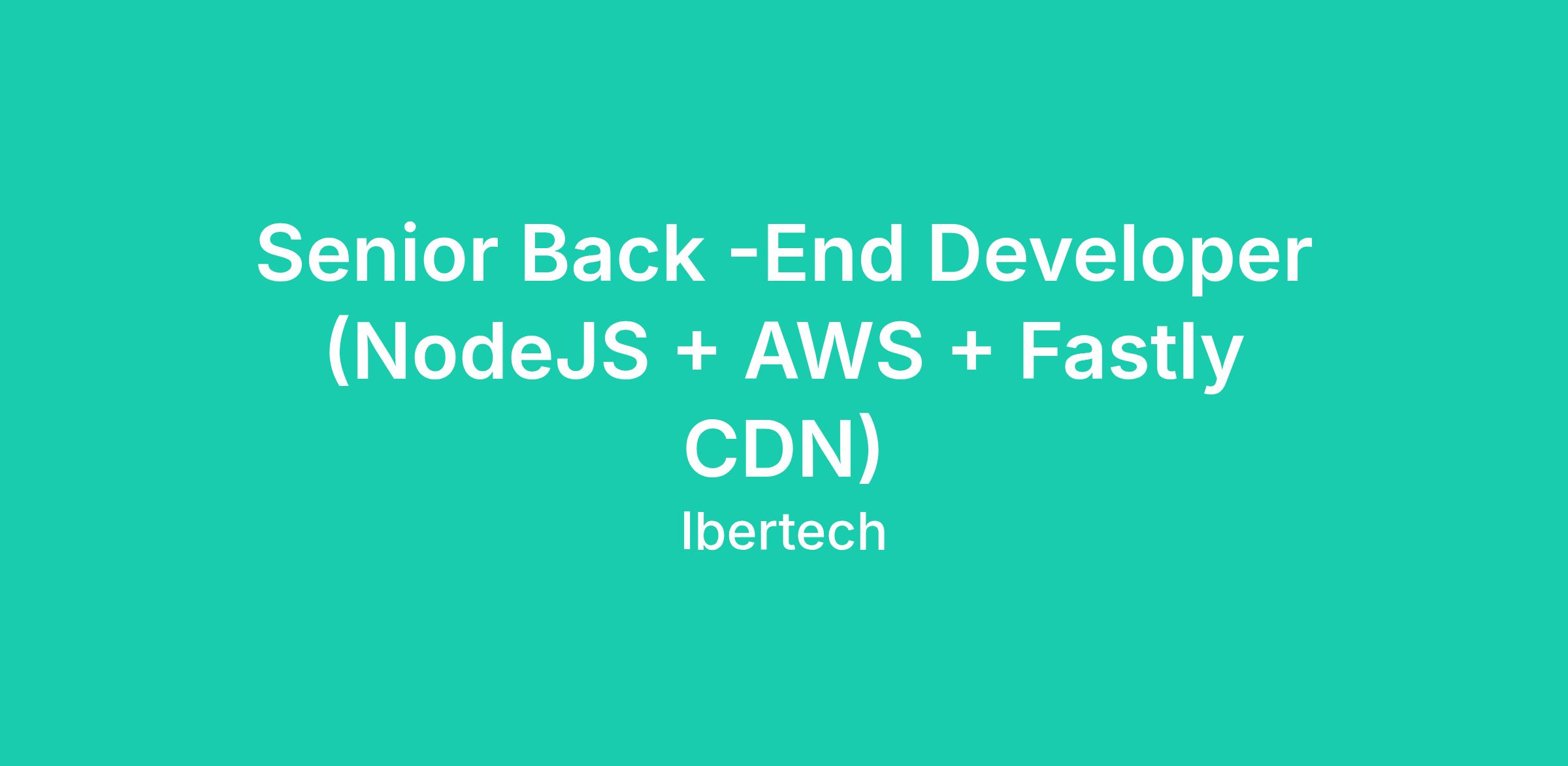Desde Ibertech, buscamos un perfil <\/span><\/span>Senior Back\-End Developer (NodeJS + AWS + Fastly CDN)<\/span><\/span><\/b> con inglés<\/b> fluido para colaborar con uno de nuestros clientes referentes. <\/span><\/span><\/span><\/span>