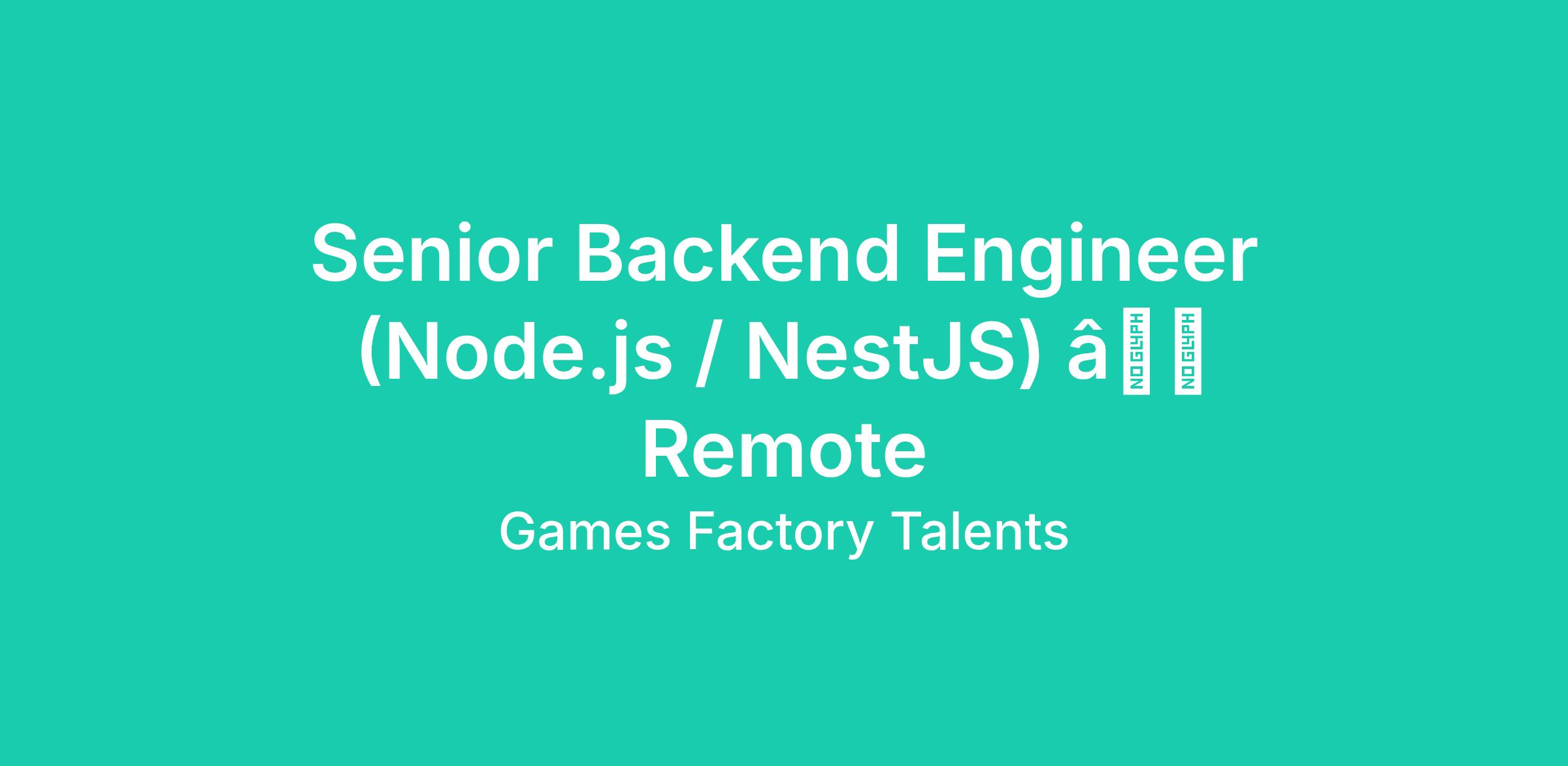 <\/html>"}}],"isMobile":false,"iframe":"true","jobType":"Full time","applyName":"Apply Now","zsoid":"20066869977","isRemoteJob":true,"FontFamily":"Verdana, Geneva, sans\-serif","jobOtherDetails":[{"fieldLabel":"Industry","uitype":2,"value":"Technology"}],"headerName":"Senior Backend Engineer (Node.js \/ NestJS) â Remote","widgetId":"18387000000011497","awliIntegId":"urn:li:organization:18747003","isJobBoard":"false","userId":"18387000000184029","attachArr":[],"awliApiKey":"77uwh5kyuhcwyu","customTemplate":"3","awliHashKey":"11e495d251cf8c6a5264f5c6054ebf8ddda5c6fcc4c5609fc6b92ba22c6b4894a3a6687359218de13624ece3f2cbbaa1a316a646d15830e635e4f479db91f802","isCandidateLoginEnabled":true,"jobId":"18387000011457233","FontSize":"12","location":"","embedsource":"CareerSite","logoId":"2q0x2436cdb89796a4973a311aad625510707"}