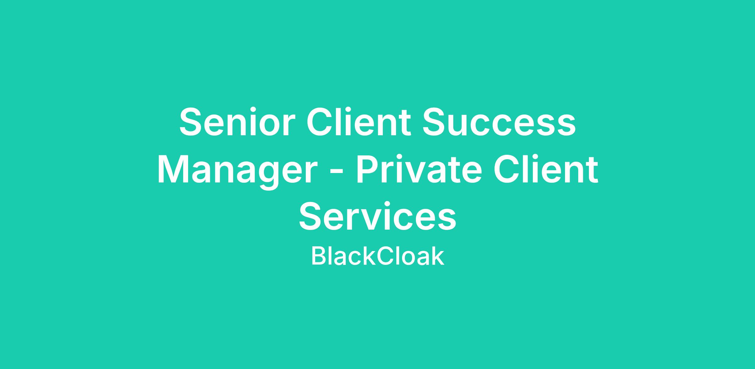 The Senior Client Success Manager is a seasoned CSM expert who thrives on managing complex, high-stakes relationships. This role will help to ensure the successful adoption of the BlackCloak platform and participate in activities to drive on-going value for the client. As a senior member of the team, you will also own relationships with our most high-profile and at-risk clients on our Private Client Services team. You will continue to provide standard support but also will become a strategic security partner, proactively identifying privacy gaps and managing complex identity restoration cases with high autonomy. You should be the type of person that exhibits passion for delivering outstanding and memorable experiences and delighting clients always. The ideal candidate will also have a strong interest in furthering their knowledge in cybersecurity and privacy.