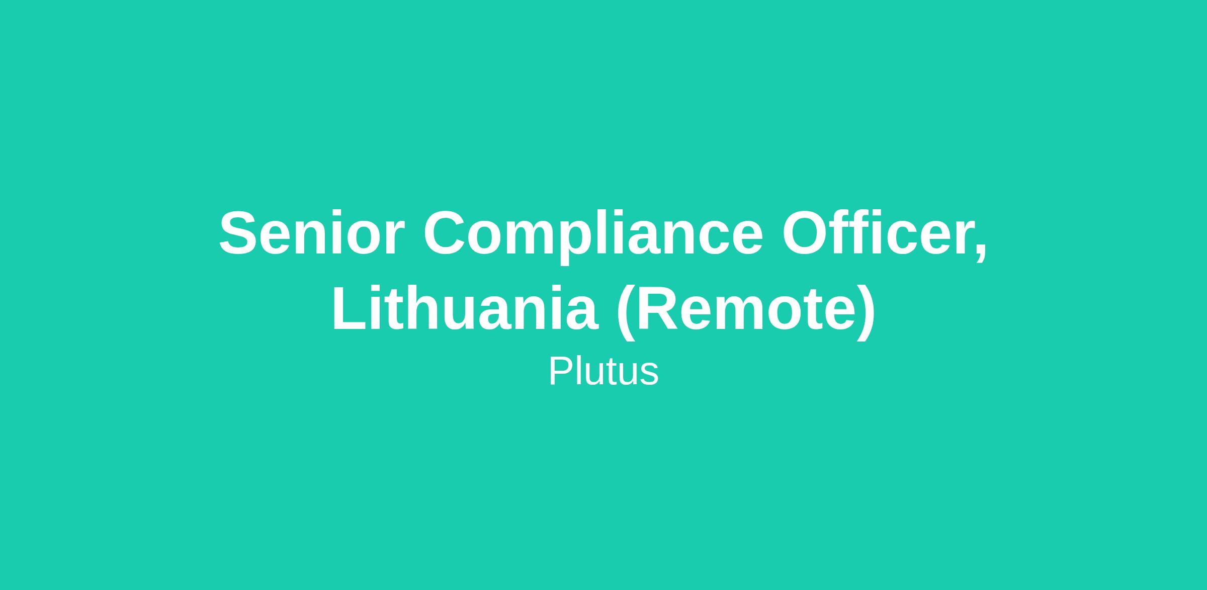 This is a full-time remote role for a Senior Compliance Officer (Lithuania) at Plutus.