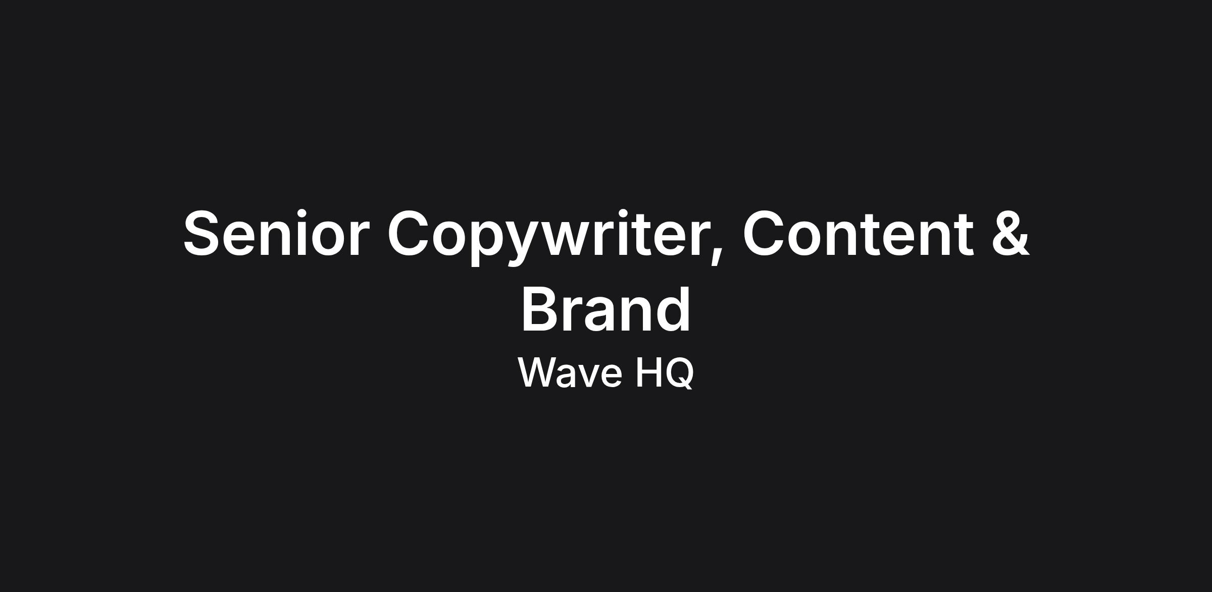 The Senior Copywriter, Content & Brand will be responsible for shaping how customers experience our brand through words. You will develop clear, compelling, on-brand copy and content that helps small business owners understand, trust, and adopt Wave.