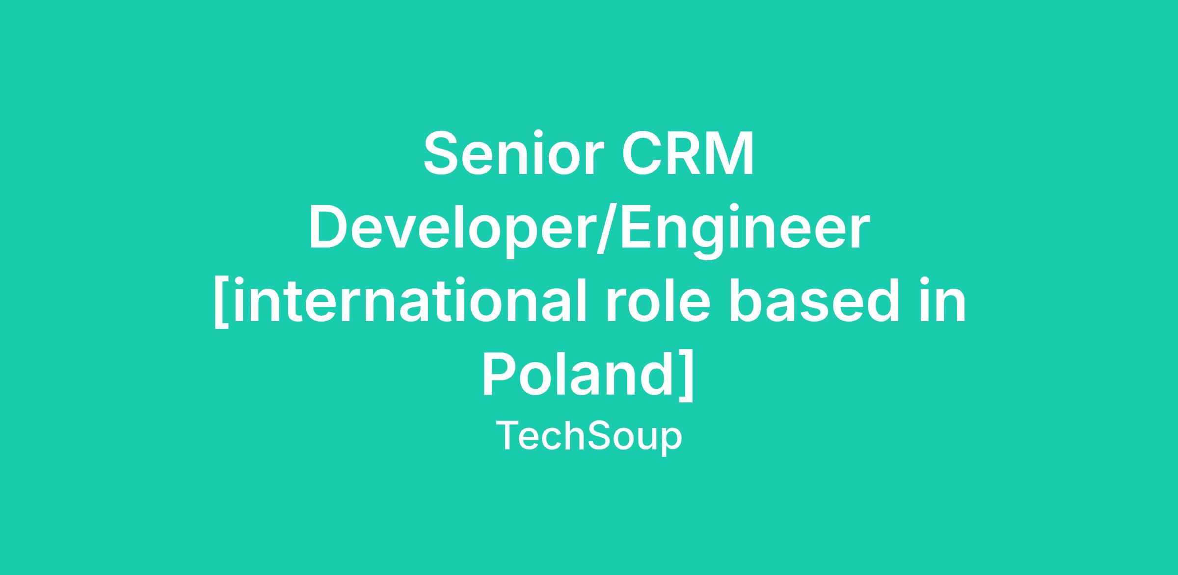 [international role based in Poland]About TechSoupTechSoup is a global nonprofit social enterprise helping NGOs access technology, resources, and funding. For over 30 years, we’ve supported 1.4M+ organizations across 230+ countries, delivering over $19B in technology value.We’re a fully remote, mission-driven team using technology to create a more equitable world.Position Summary As a Senior Senior CRM Developer / Engineer you will work closely with IT Team and various stakeholders. You will also be responsible for designing and implementing the full technology stack powering a global nonprofit enterprise operations platform. You will also be creating end-to-end flow starting from business process design and CRM customization through cloud-native serverless infrastructure, third-party API integrations, ETL pipelines, and security architecture.Key Responsibilities