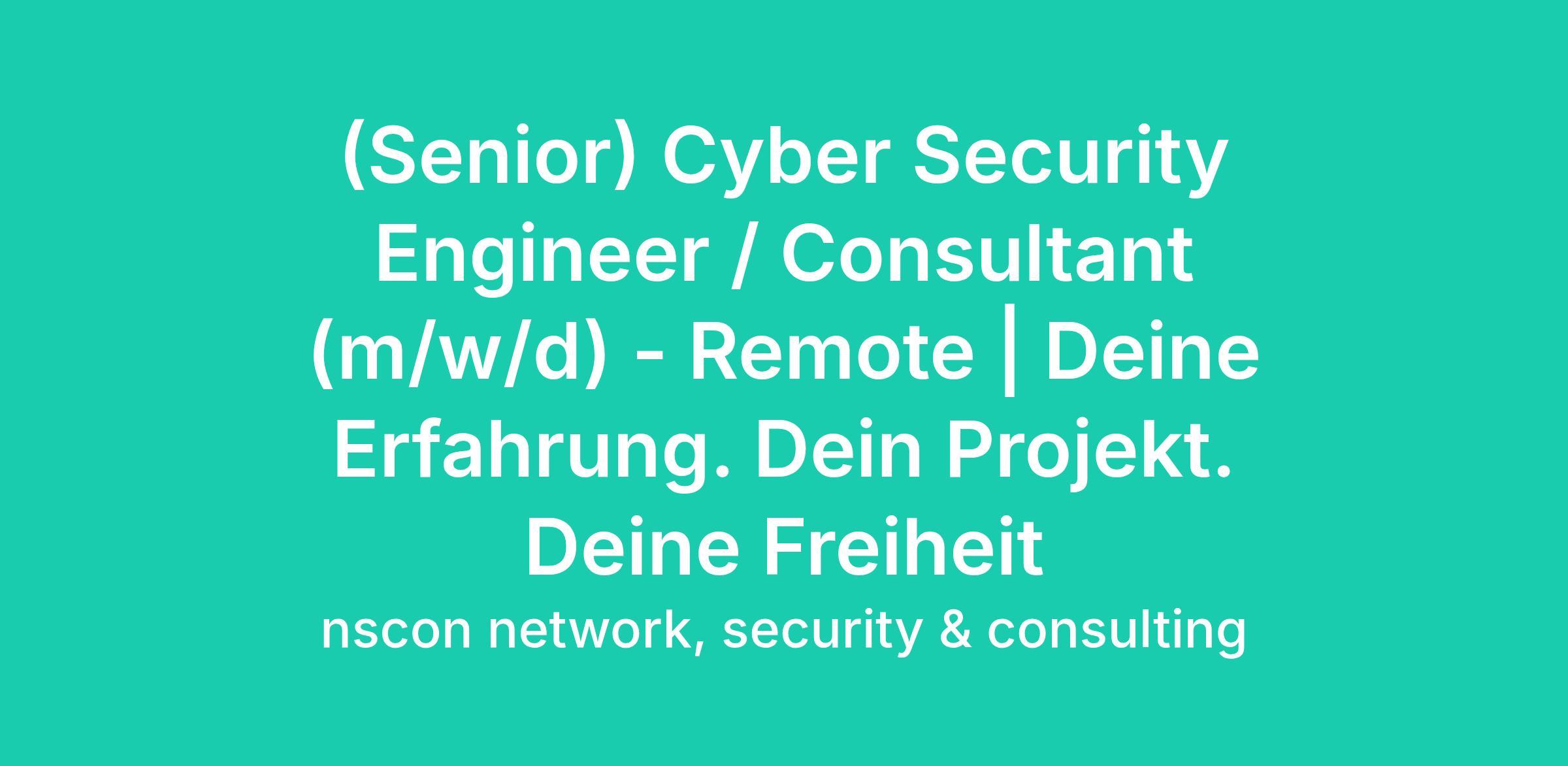 (Senior) Cyber Security Engineer / Consultant (m/w/d) - Remote | Deine Erfahrung. Dein Projekt. Deine Freiheit