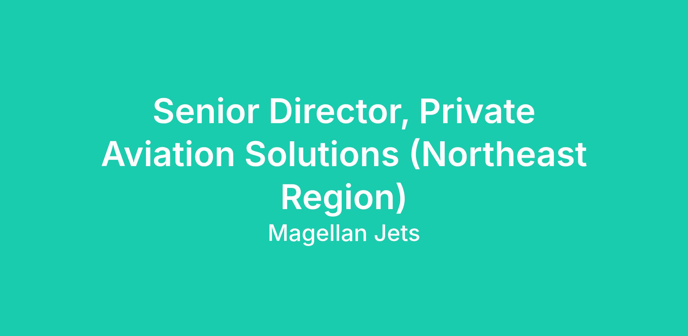 This job description is intended to convey information essential to understanding the scope of the Senior Director, Private Aviation Solutions- Northeast Region position. It is not an exhaustive list of responsibilities, duties, and skills required for the role. Magellan Jets reserves the right to amend this job description at any time to reflect business needs and operational priorities.