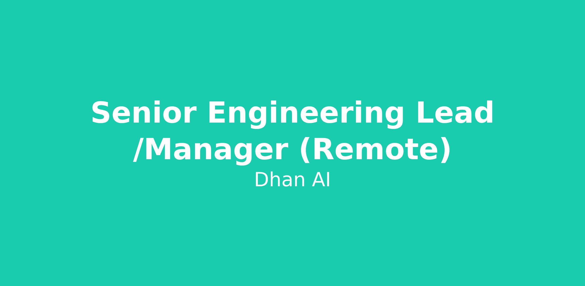 Senior Engineering Lead /Manager (Remote)