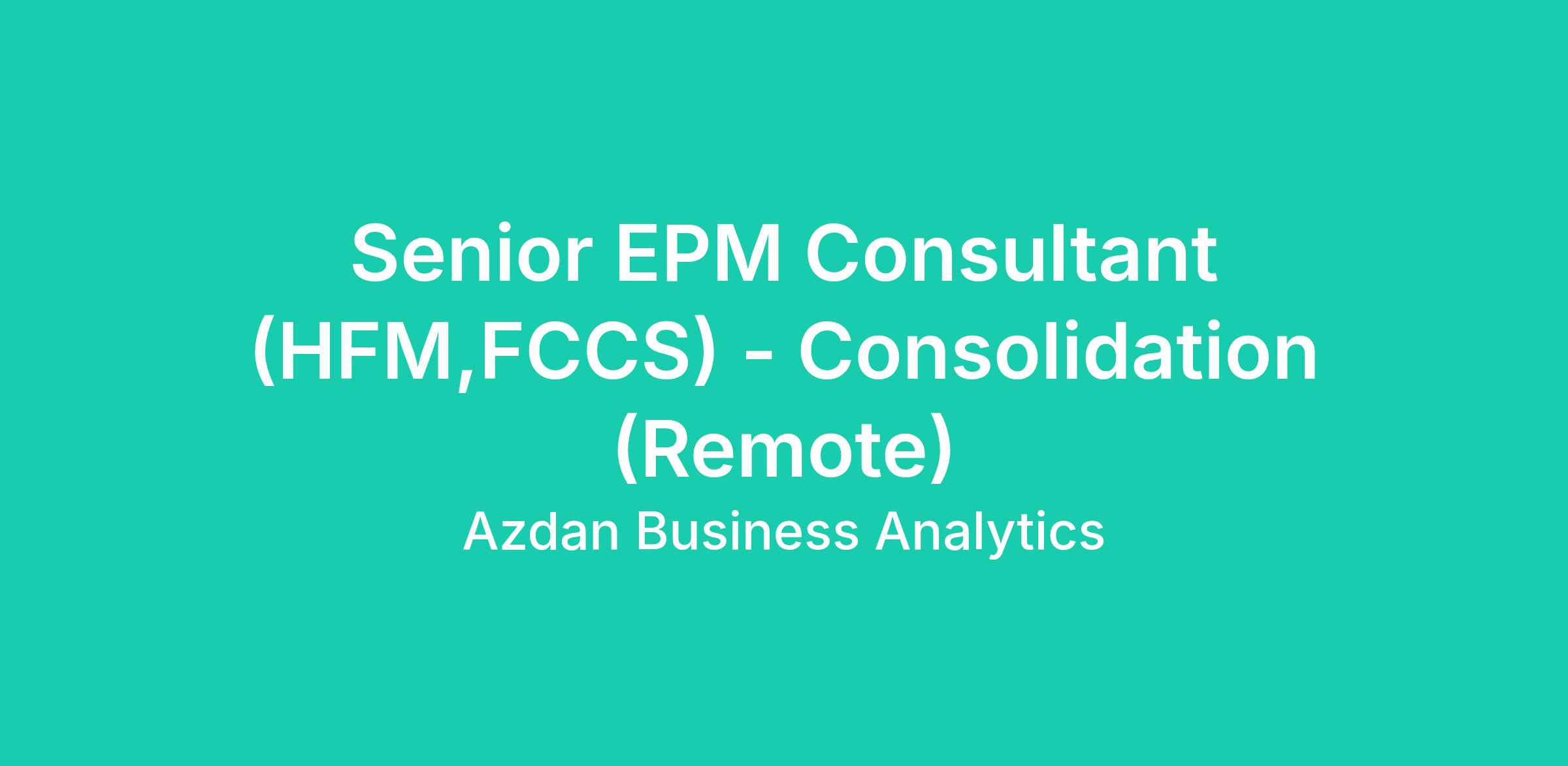 Senior EPM Consultant (HFM,FCCS) - Consolidation (Remote)