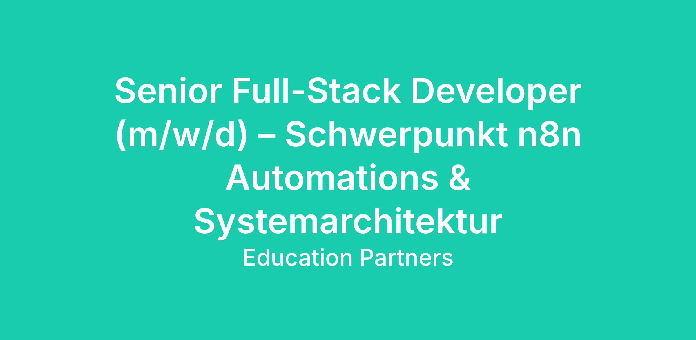 Als Senior Full-Stack Developer mit Schwerpunkt auf Workflow-Automatisierung (n8n) und Systemlandschaftsarchitektur bist du Teil unseres zentralen Tech- & Product-Teams in Berlin.