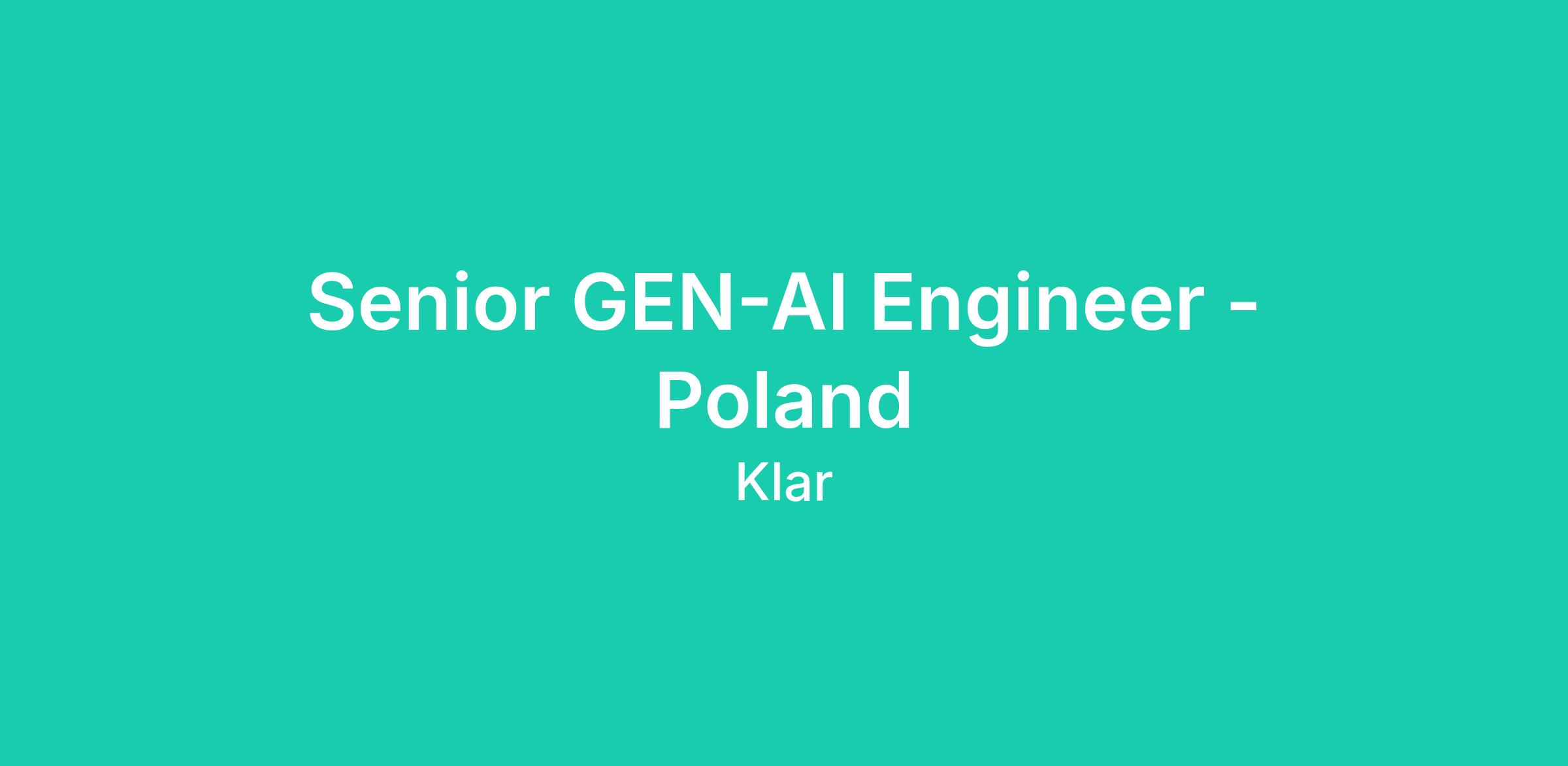 Senior GEN-AI Engineer - Poland