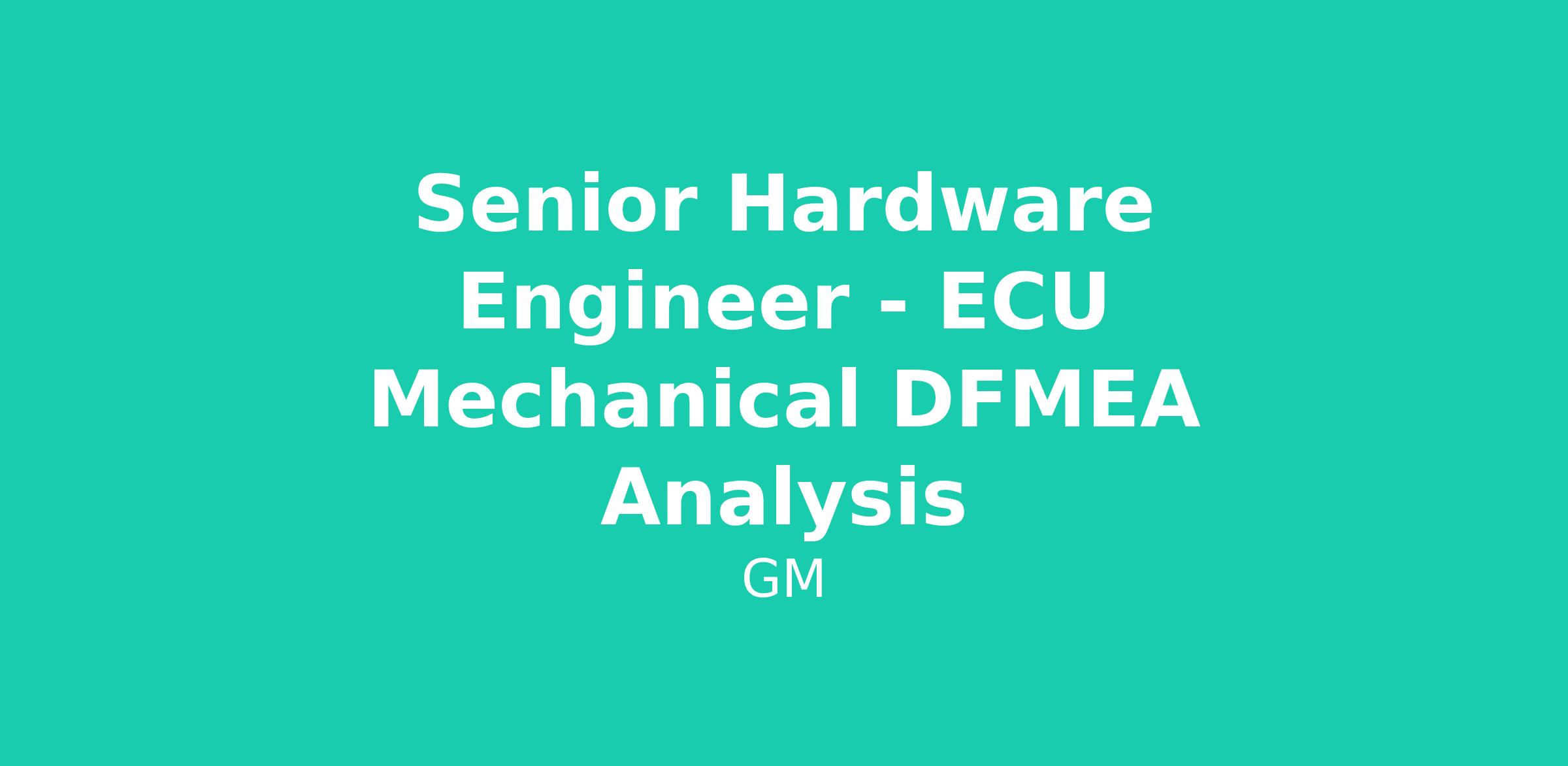 New Electronic Control Unit (ECU) designs used in automotive applications continue to be an area of growth in the global automotive market. Our team is looking for a creative and highly energetic ECU Hardware Analysis Engineer who can perform mechanical DFMEA analysis of ECU mechanical elements and assist in developing our internal analysis approach and procedures for inhouse electronics designed ECUs. This work will be in support of the overall Safety and Reliability Case development for ECUs used within the Software Defined Vehicle (SDV) electrical architecture technologies that are critical in achieving GM’s Vision of Zero Crashes, Zero Emissions, and Zero Congestion.