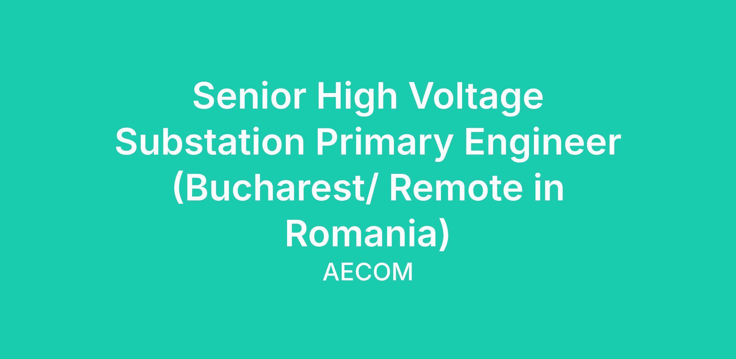 AECOM’s Enterprise Capabilities team is looking for a Senior High Voltage Substation Primary Engineer to join our team in Romania.