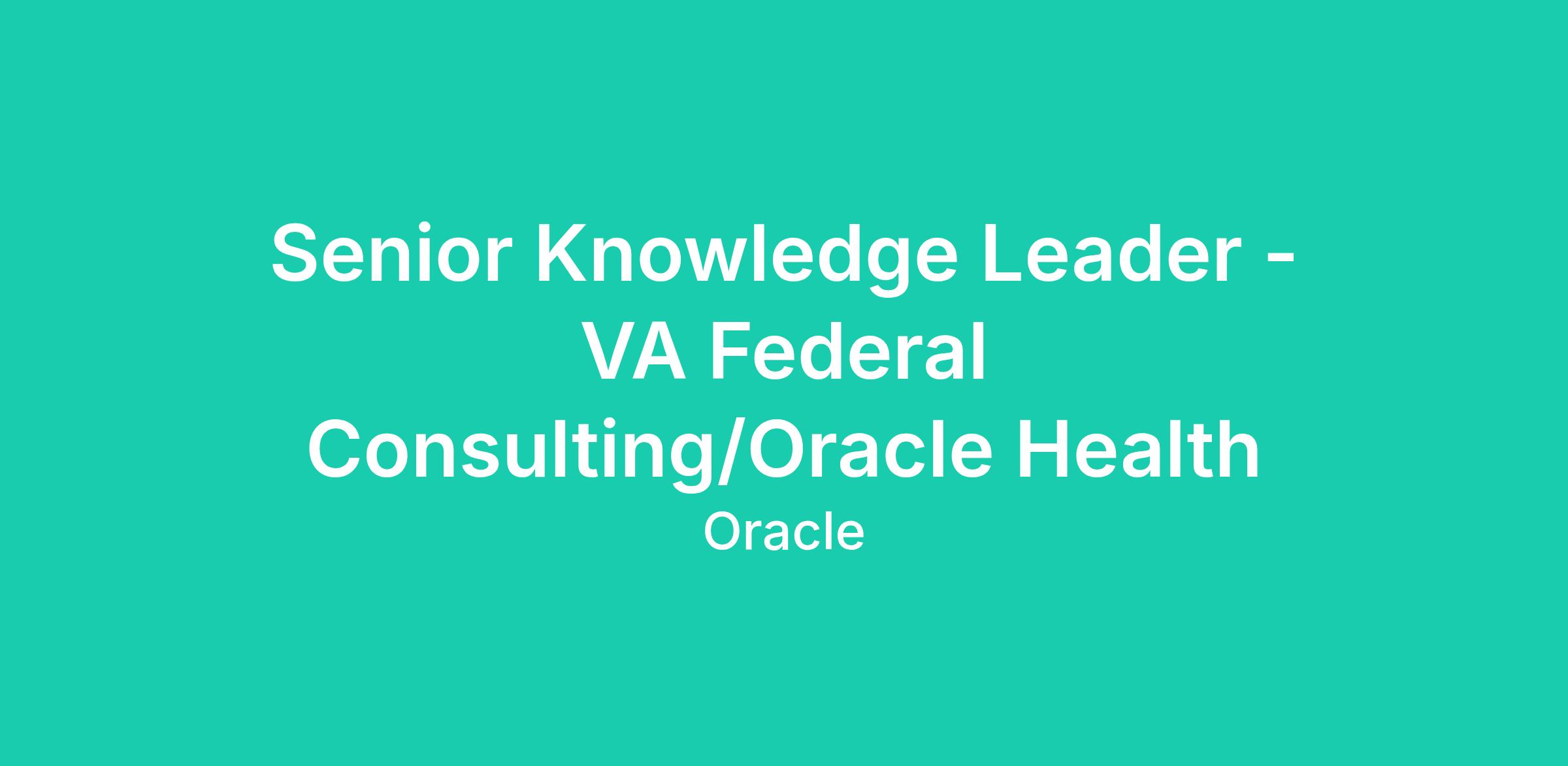 DescriptionWe are looking for an experienced solution consultant to help design, configure, activate and support the education, knowledge sharing, and product release communications for our internal solution consultants that support the Oracle Health Millennium solutions across Federal agencies including the Department of Defense, United States Coast Guard, Veterans Affairs and Indian Health Service. The Federal Consulting team is a group of hard-working, knowledgeable, passionate members who want to shape the electronic health records systems for active-duty service men and women, their beneficiaries, our Nation’s Veteran’s, American Indians, and Alaska Natives.