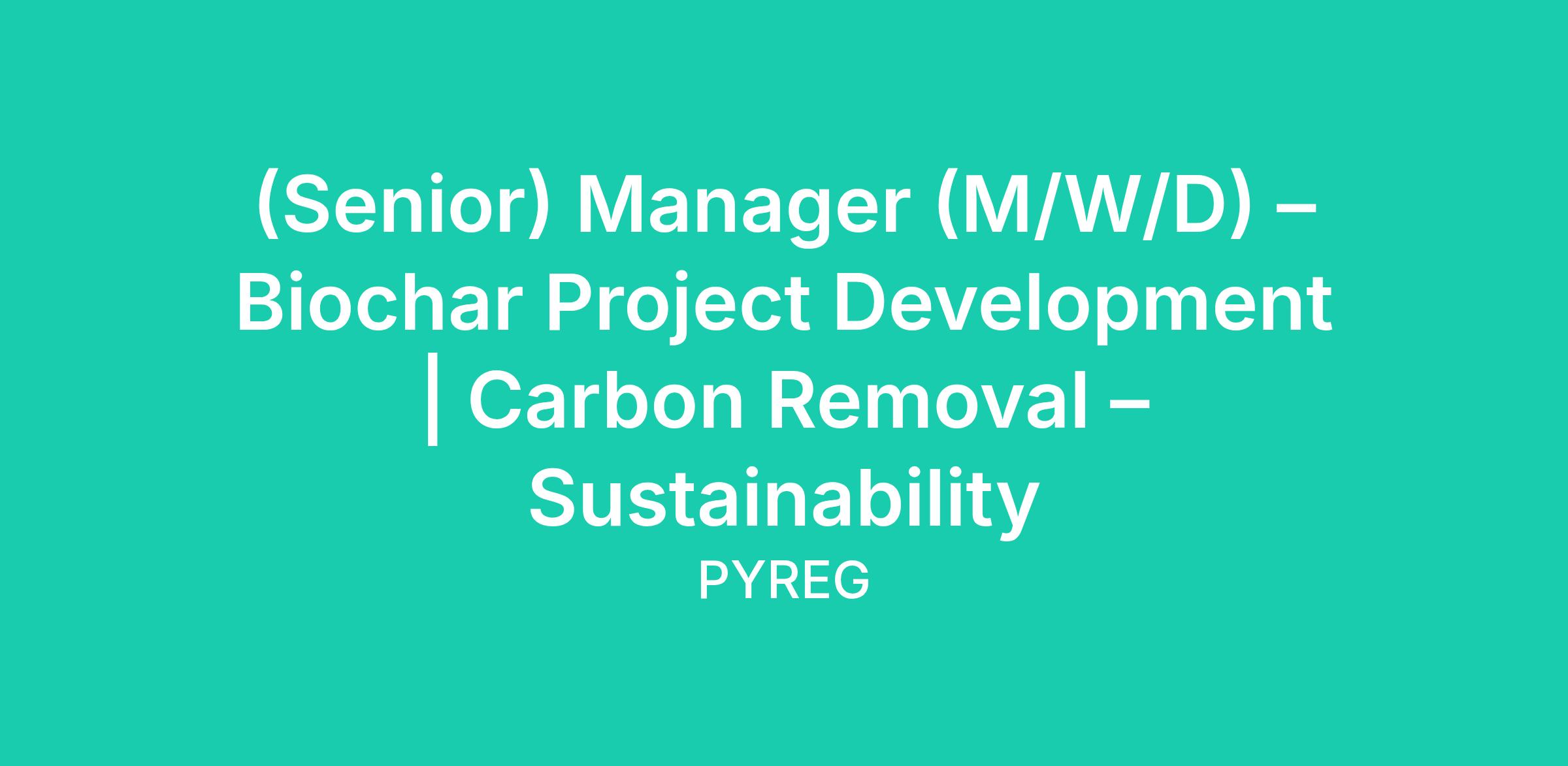 (Senior) Manager (M/W/D) – Biochar Project Development | Carbon Removal – Sustainability