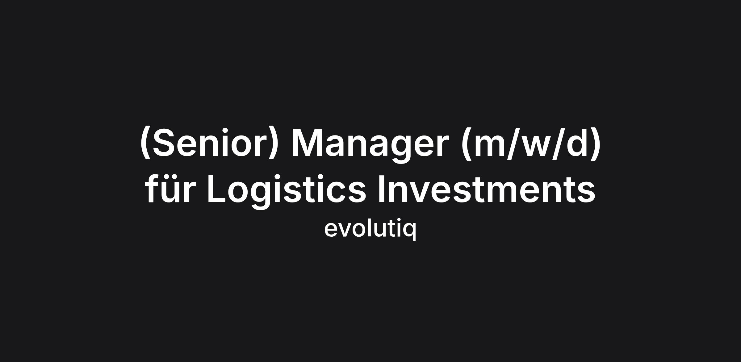 (Senior) Manager (m/w/d) für Logistics Investments