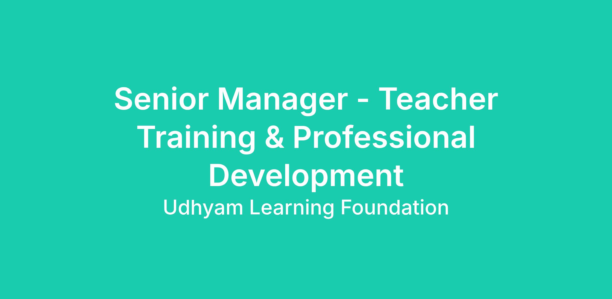 Senior Manager - Teacher Training & Professional Development