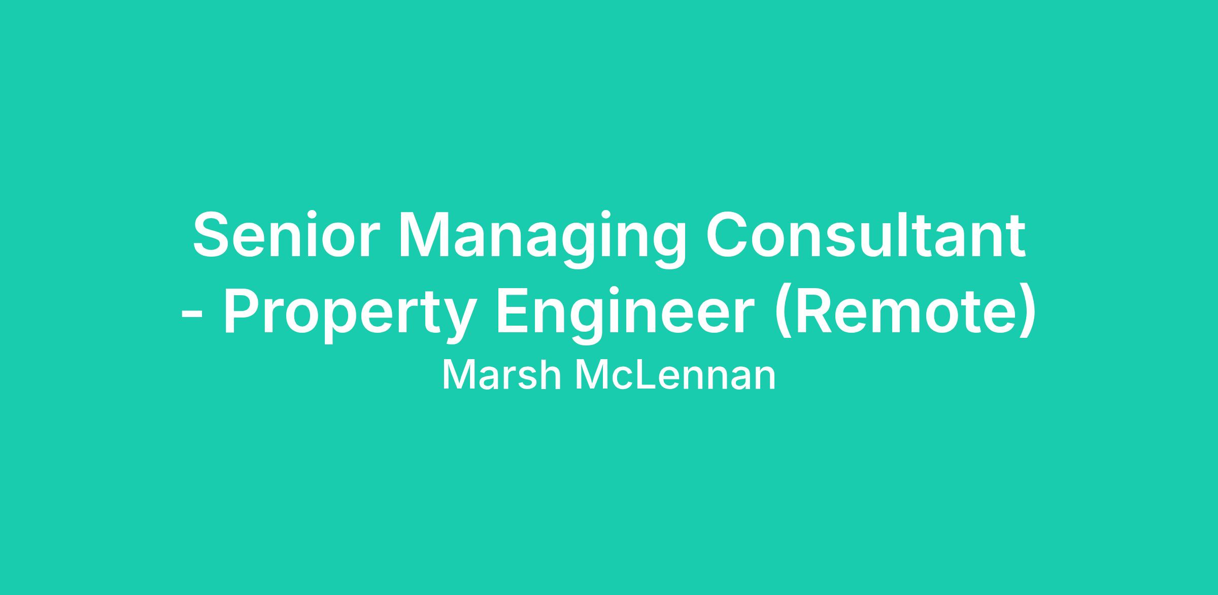 We are seeking a talented individual to join our team at Marsh as a Senior Consultant for our Property Risk Consulting practice based in the Central U.S. While it is preferred to be near one of our offices, it is not a requirement of this role.