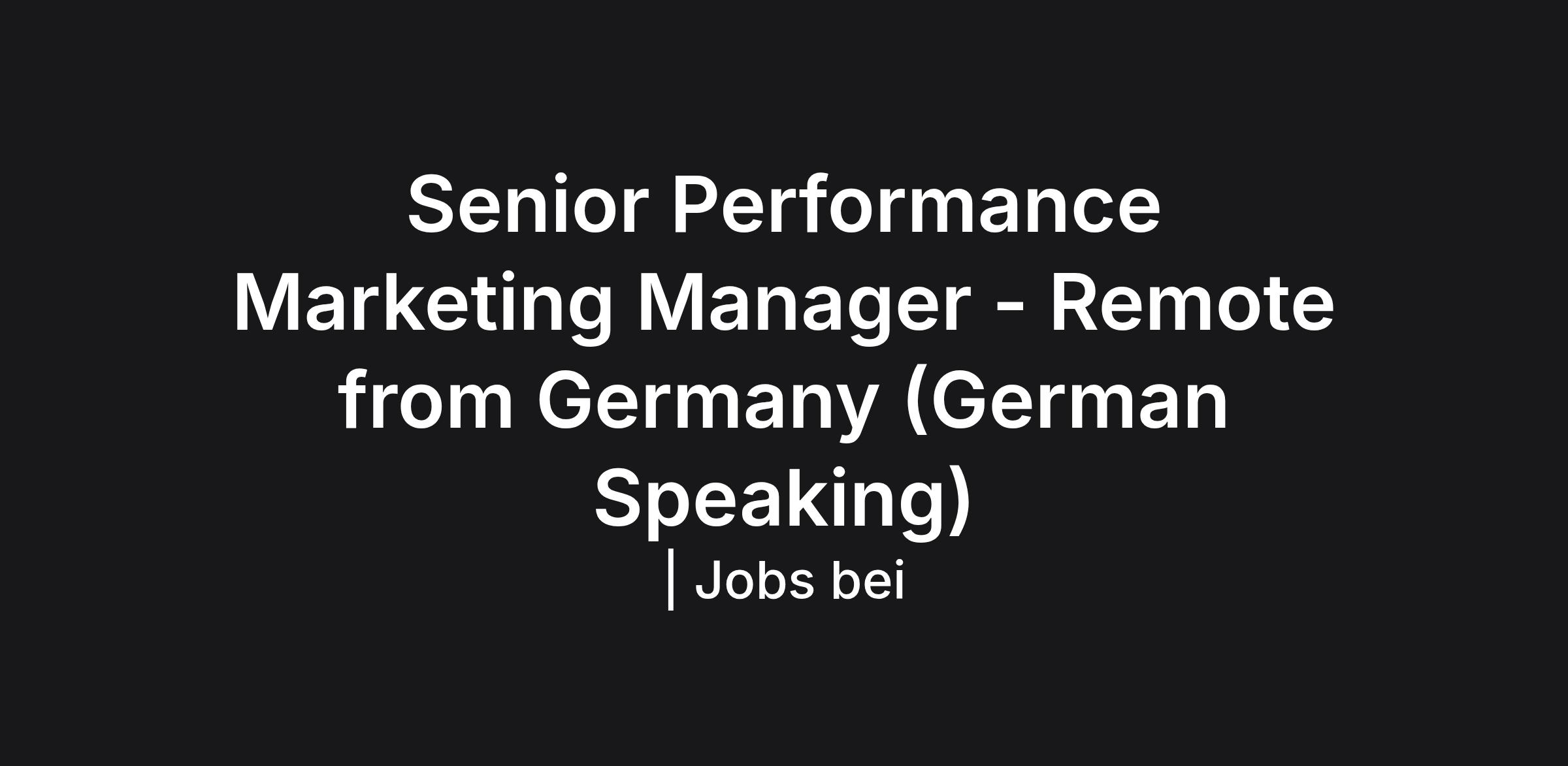 Senior Performance Marketing Manager - Remote from Germany (German Speaking)