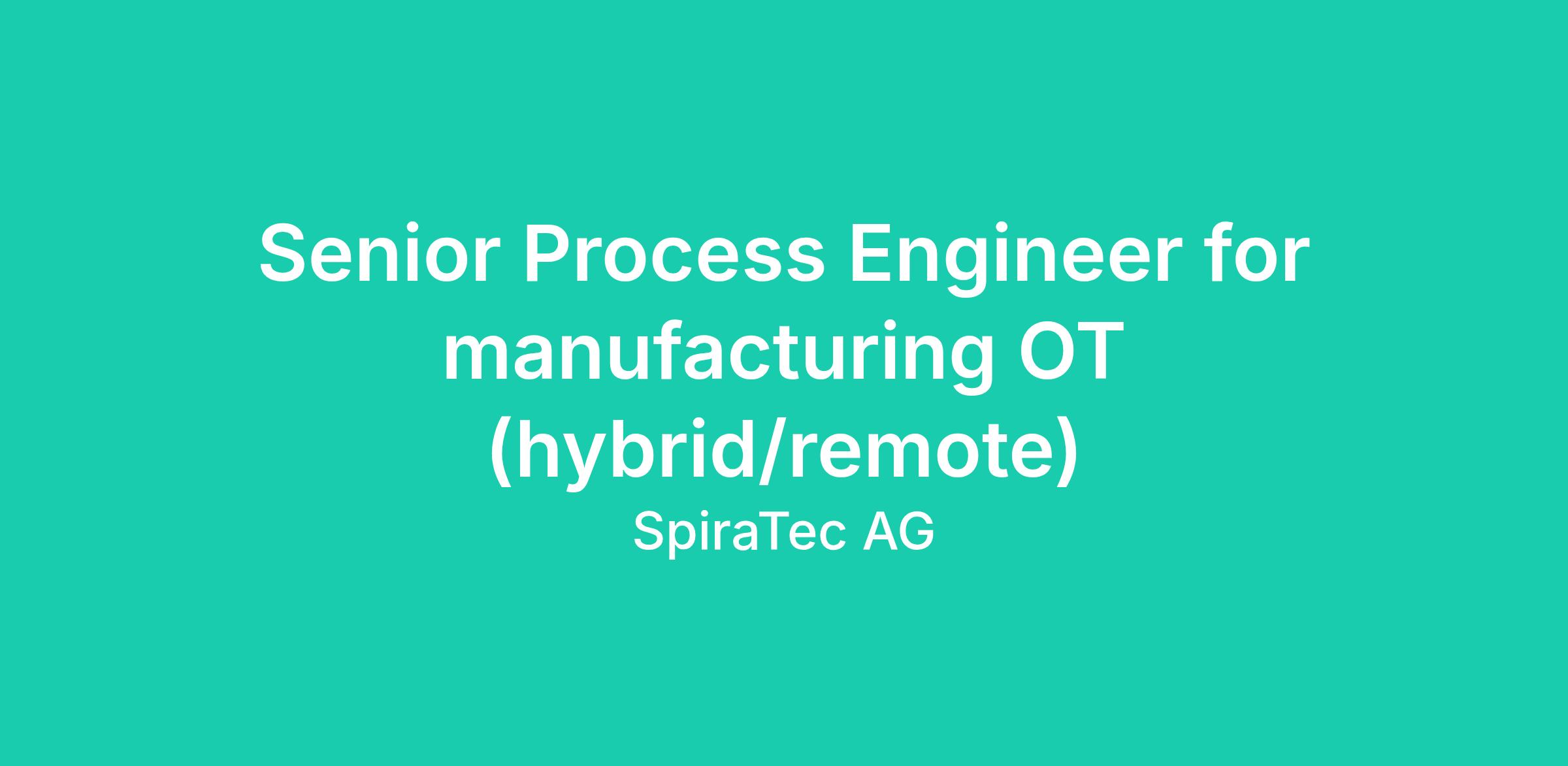 Senior Process Engineer for manufacturing OT (hybrid/remote)