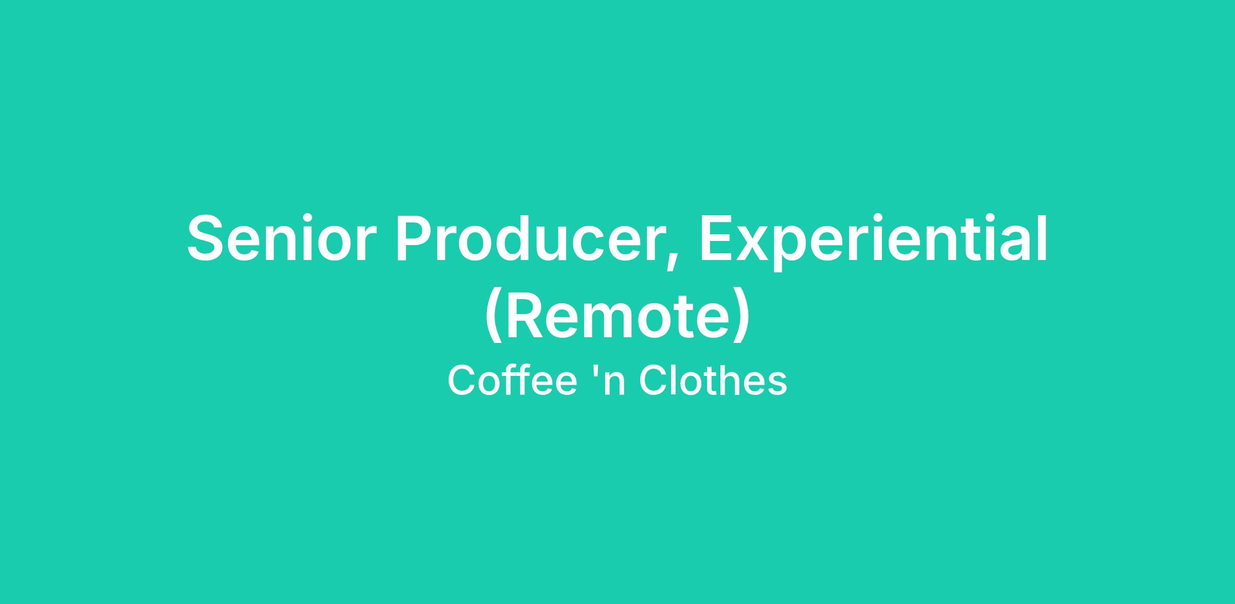 Senior Producer, Experiential (Remote)