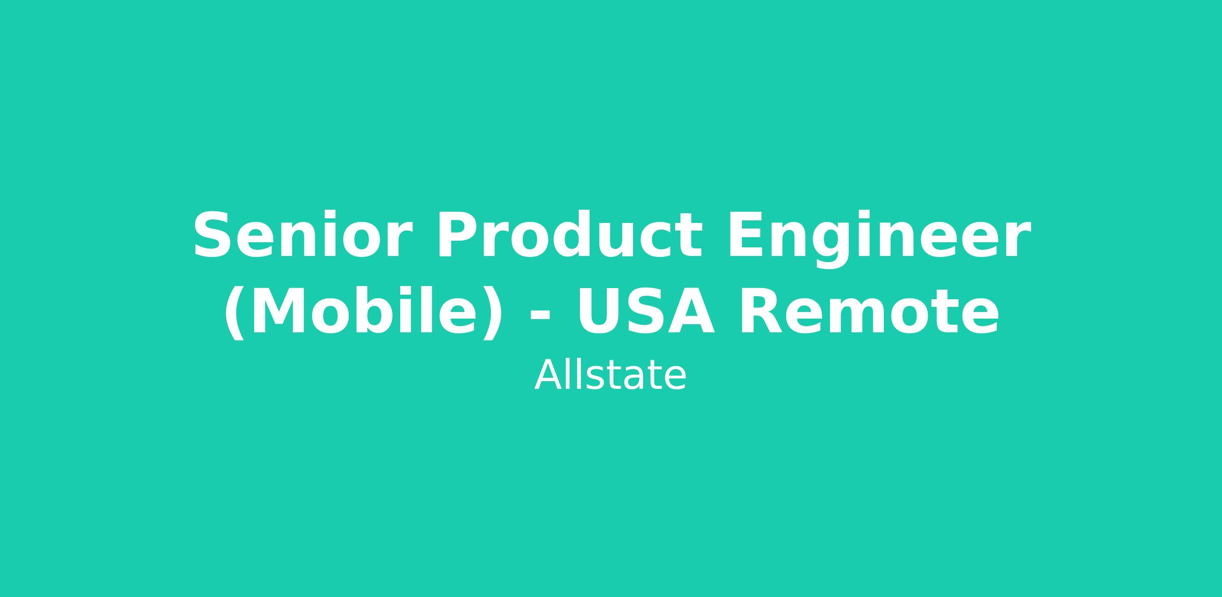 Senior Product Engineer (Mobile) - USA Remote