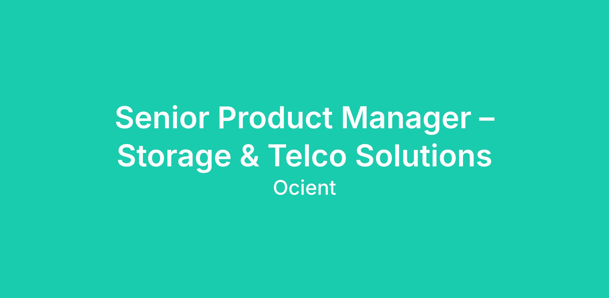 Job Title: Senior Product Manager – Storage & Telco Solutions