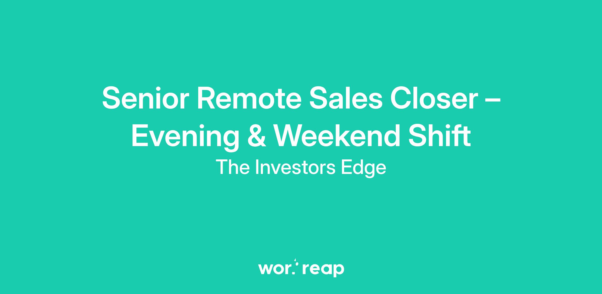 Here's the deal: The Investor's Edge has been helping people build wealth through real estate for 20 years, and we need another talented closer to join our evening/weekend team. Why evenings and weekends? Because that's when our hottest leads come through—people who are ready to invest and change their lives.