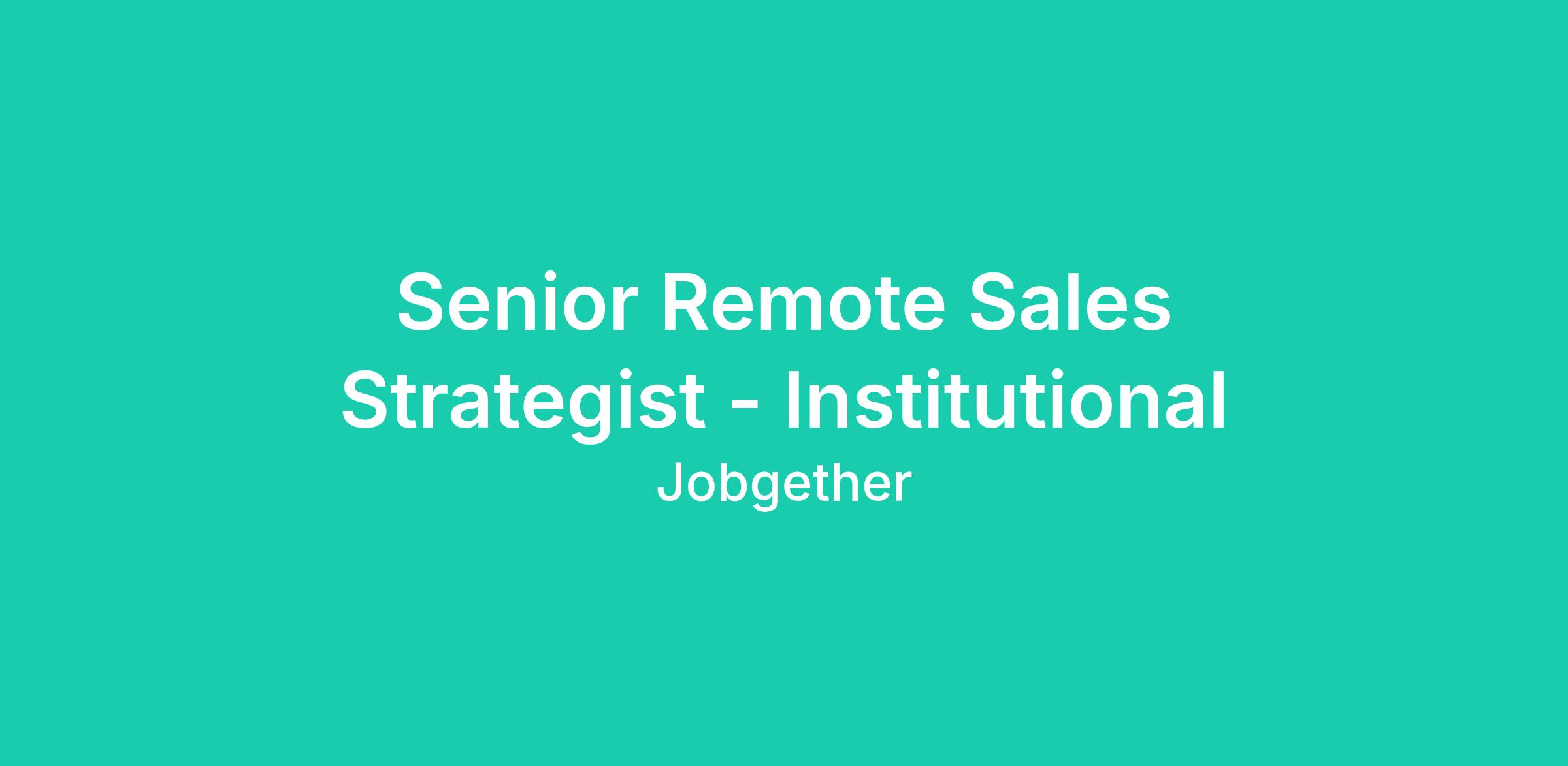 Senior Remote Sales Strategist - Institutional