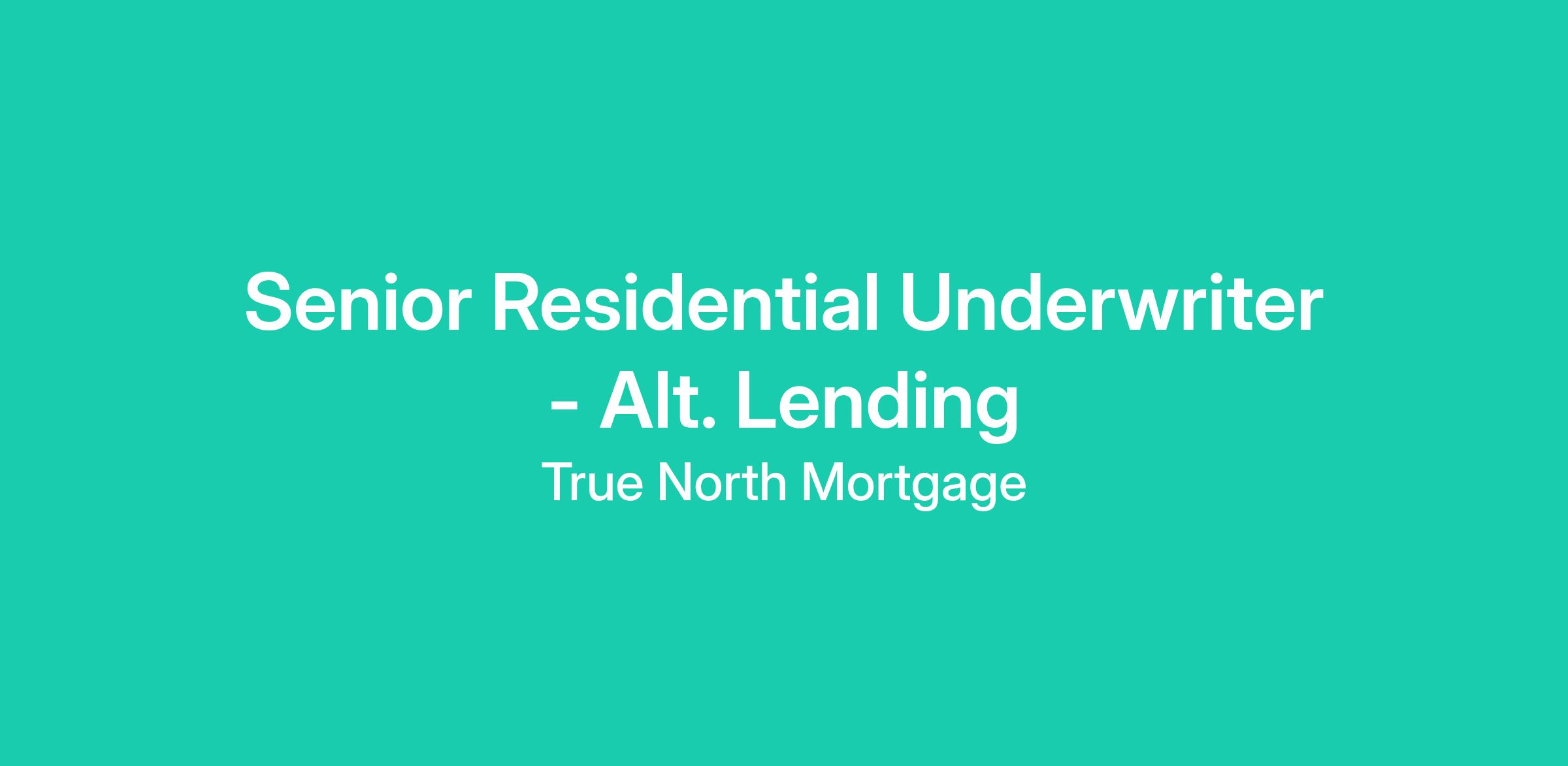 Senior Residential Underwriter - Alt. Lending