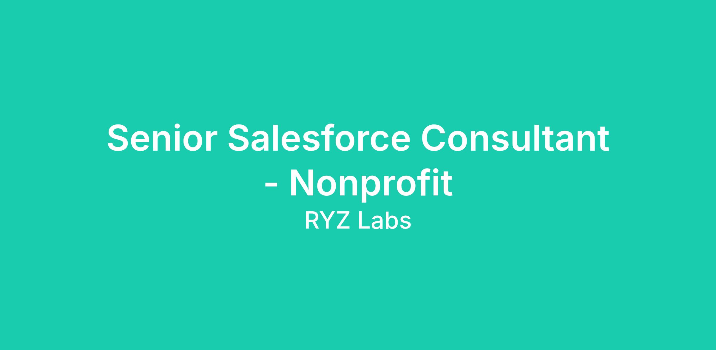 RYZ Labs is looking for an experienced Senior Salesforce Consultant - Nonprofit to join one of our clients’ teams. You will design and implement Salesforce solutions for a diverse range of Nonprofit clients. Candidates should possess knowledge of Salesforce's functional and technical capabilities in the Nonprofit space. You will act as a knowledgeable liaison with client executives, uncover business requirements, develop a technical strategy, and create effective solutions to address the client's needs. As a part of the Plative Nonprofit Transform team, you will join a team of passionate individuals with diverse backgrounds and experiences, all dedicated to improving the way social impact organizations operate.