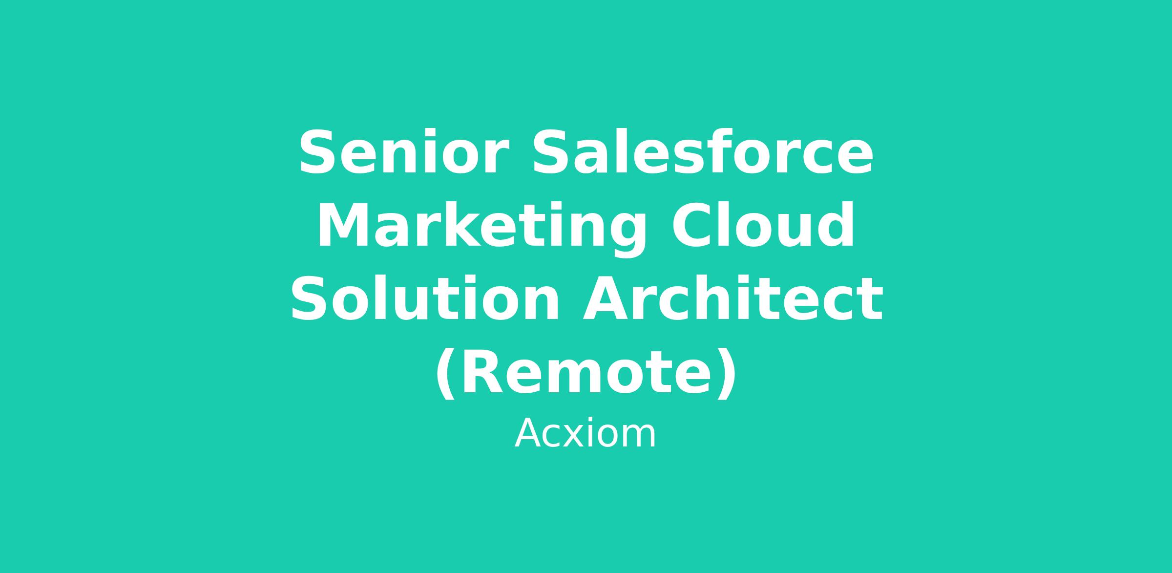 The ideal Sr. Architect candidate has extensive experience as a consultant and comprehensive knowledge of the Salesforce Marketing Cloud platform. The candidate must be able to lead requirement gathering sessions, design solutions and then develop those within the Salesforce platform. The candidate must also be able to manage customer expectations and scope by working closely with stakeholders and other internal parties as appropriate.