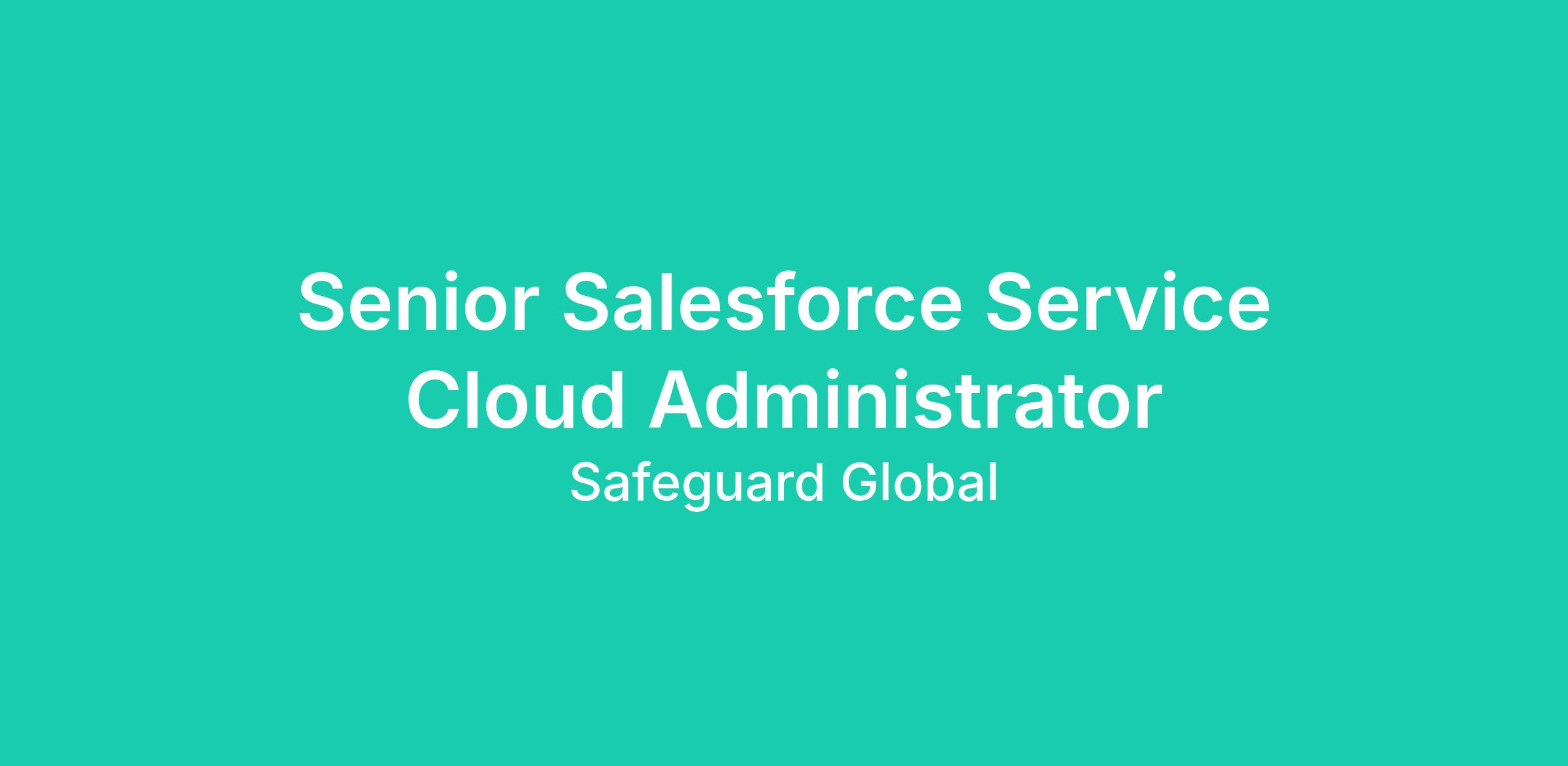 We are seeking an experienced Senior Salesforce Administrator to manage and optimize Safeguard Global’s Salesforce platform, with primary responsibility for the Service Cloud environment while partnering with teams supporting Sales Cloud.