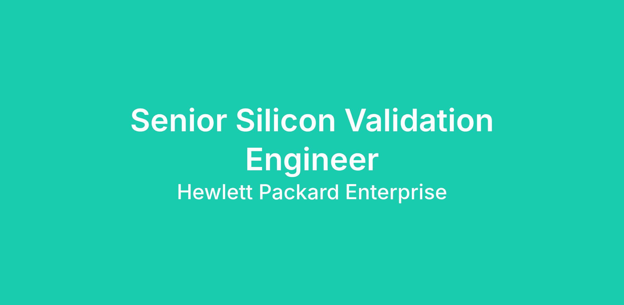 HPE is seeking a Senior Silicon Validation Engineer to help validate the functionality of HPE Slingshot ASIC products. HPE Slingshot is a modern high-performance interconnect for HPC and AI clusters that delivers industry leading performance, bandwidth, and low latency for HPC, AI/ML, and data analytics applications. Including multiple generations of both air and fully liquid cooled switch and NIC products, it serves as the interconnect of choice for the worlds faster supercomputers, including the top three systems on the top500.org list.