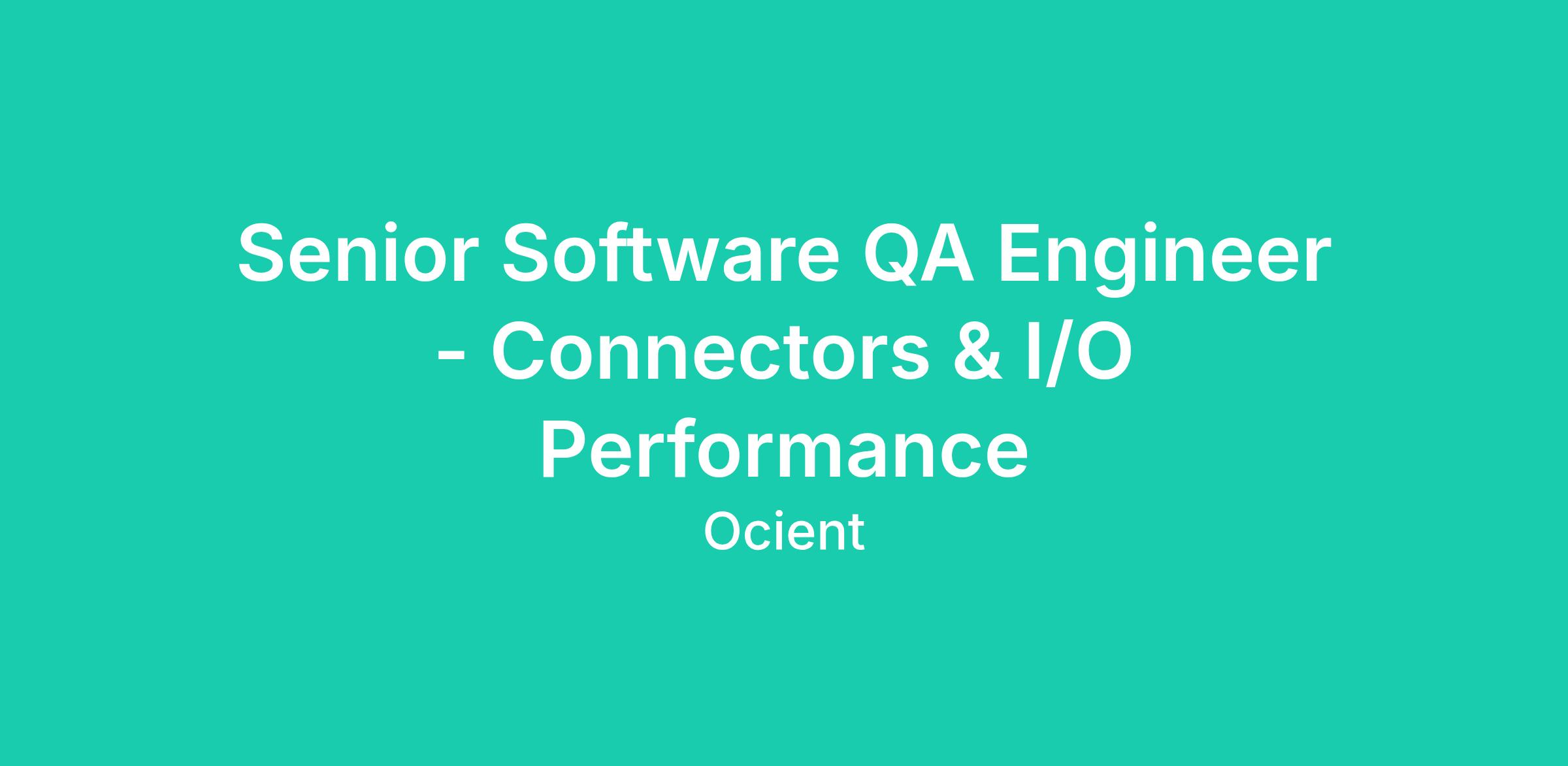 Job Title: Senior Software QA Engineer - Connectors & I/O Performance