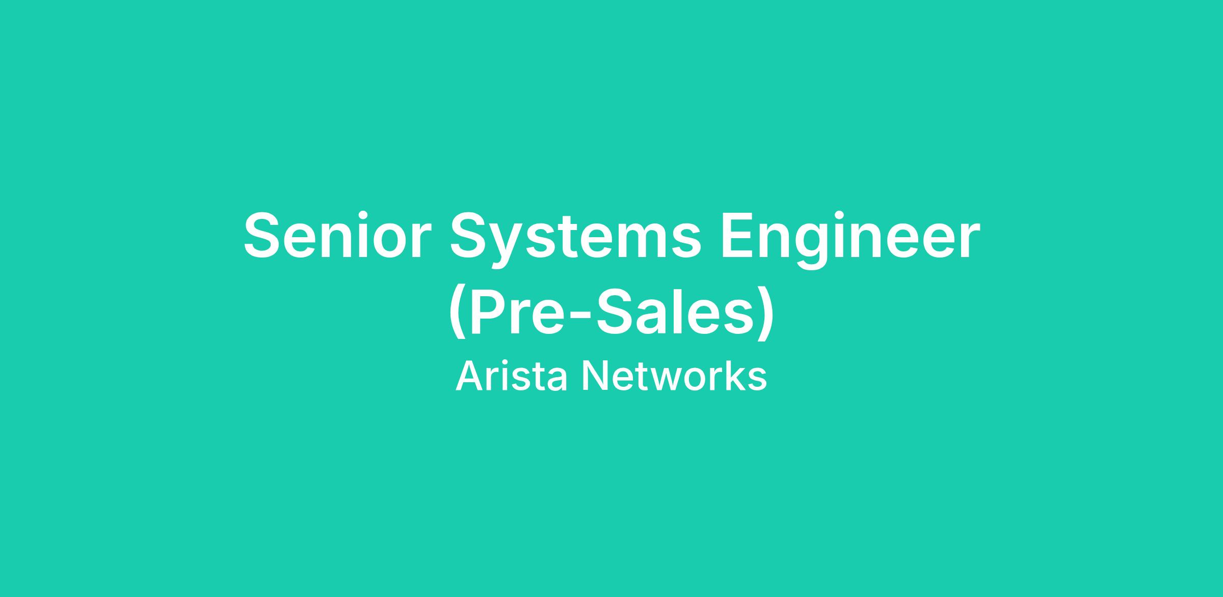 The Senior Systems Engineer is a critical component of the Arista Sales team with the key responsibility of acting as a trusted advisor for our customers to gather requirements and identify opportunities with existing and new customers.